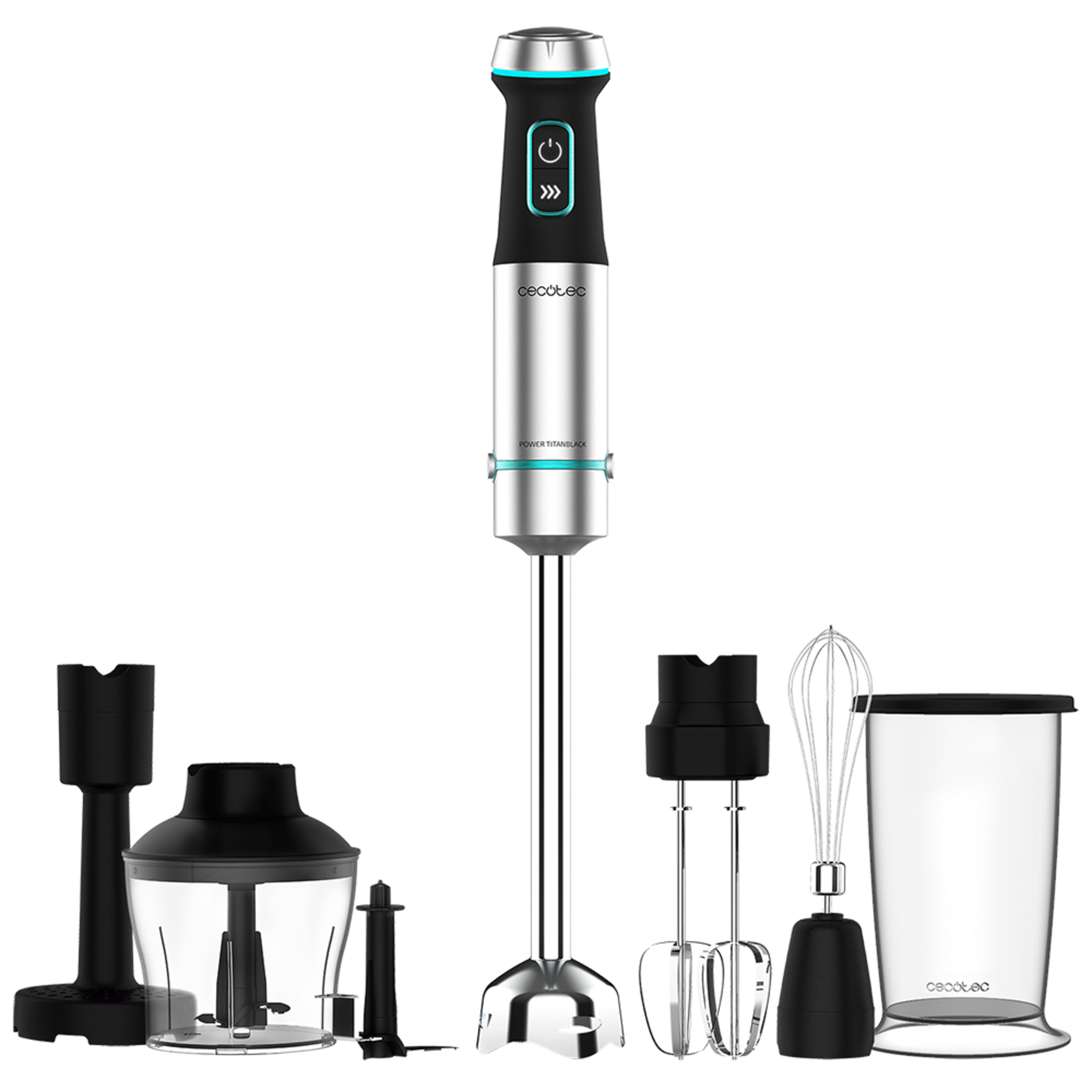 Batidora de mano Power TitanBlack 1200 XL PerfectCream&Crush. 1200 W, Cuchillas de 4 hojas, Pie XL, Campana antisalpicaduras, Incluye picadora con cuchilla, varillas batidoras y pasapurés