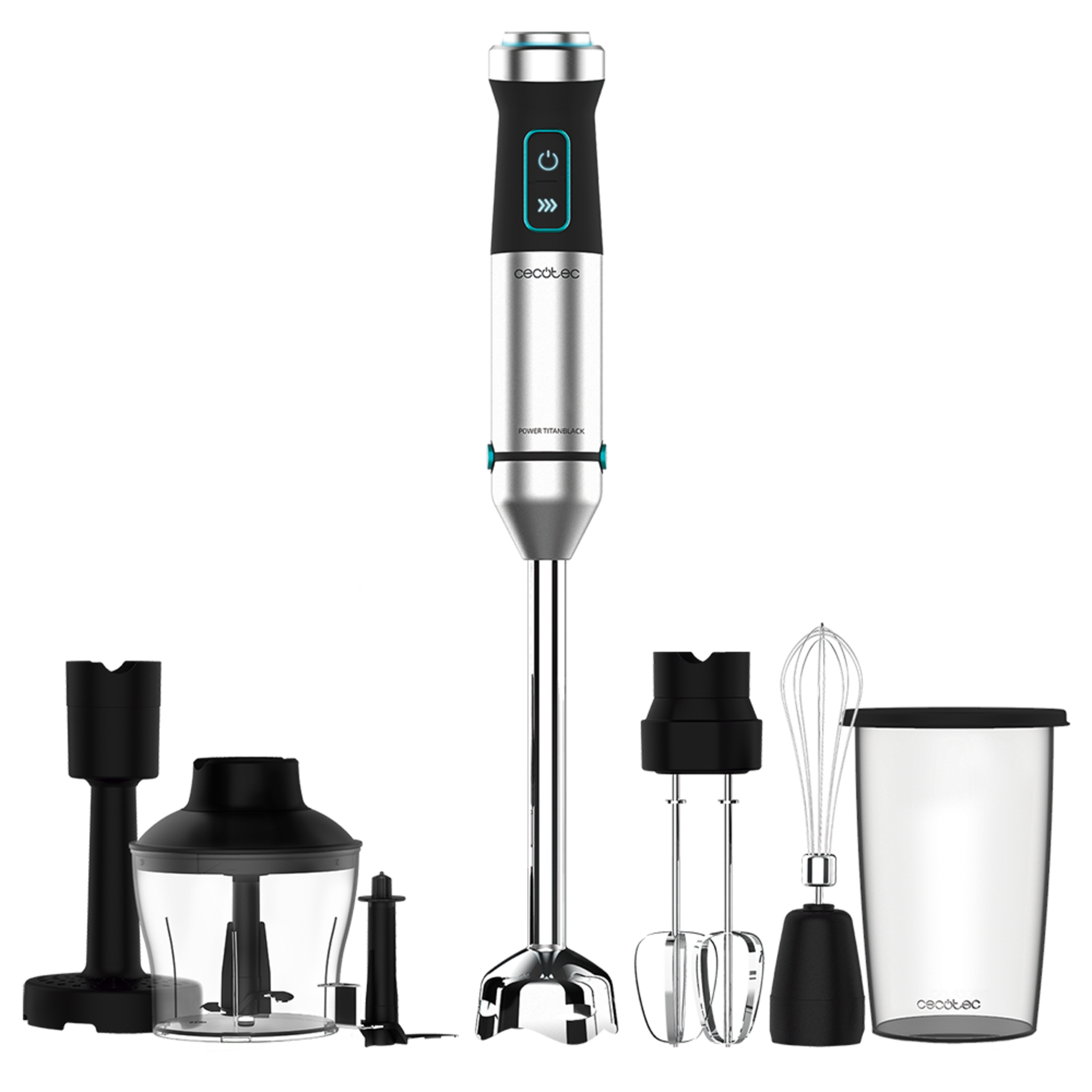 Batidora de mano Power TitanBlack 1500 XL PerfectCream&Crush. 1500 W, Tecnología CrossBlades con Cuchillas de 4 hojas, Pie XL, Incluye Picadora, Varillas batidoras y Pasapurés