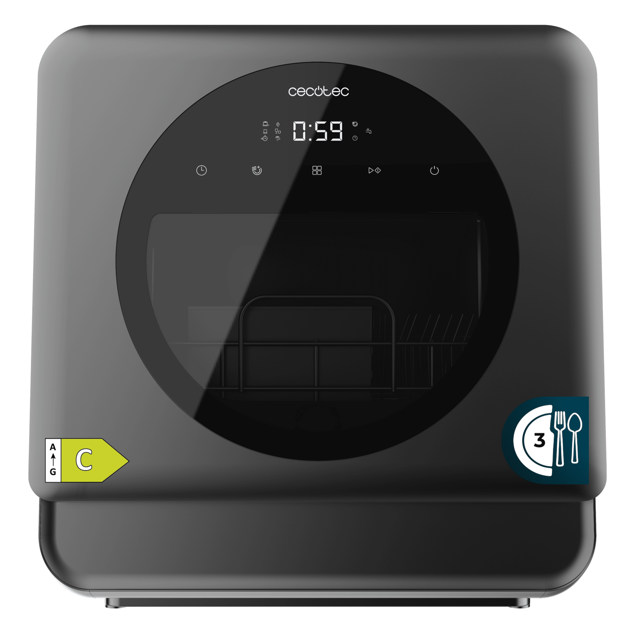Lavavajiillas compacto de 3 servicios acabado inox oscuro, con 6 programas, ventana de visualización y luz interior