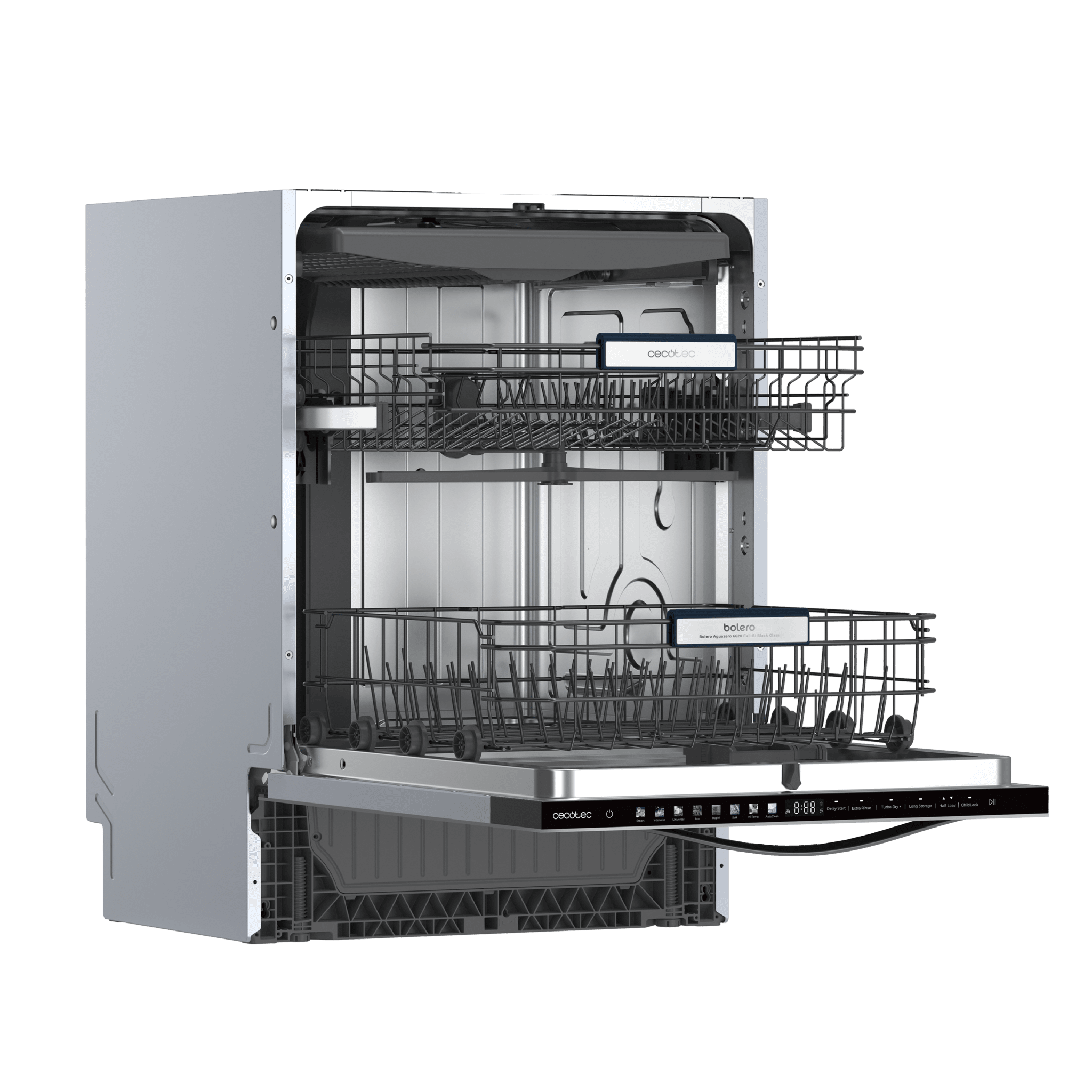 Lavavajillas Bolero integrable y cristal negro mate de 60 cm con 15 servicios, Clase C, 8 Programas, Motor Inverter, pantalla FullColor, Smart Wash, UV Light, Turbo Dry+, AutoClean, Half Load, Dual Zone Wash, Delay Start, ChildLock, bandeja superior ajustable y tercera bandeja