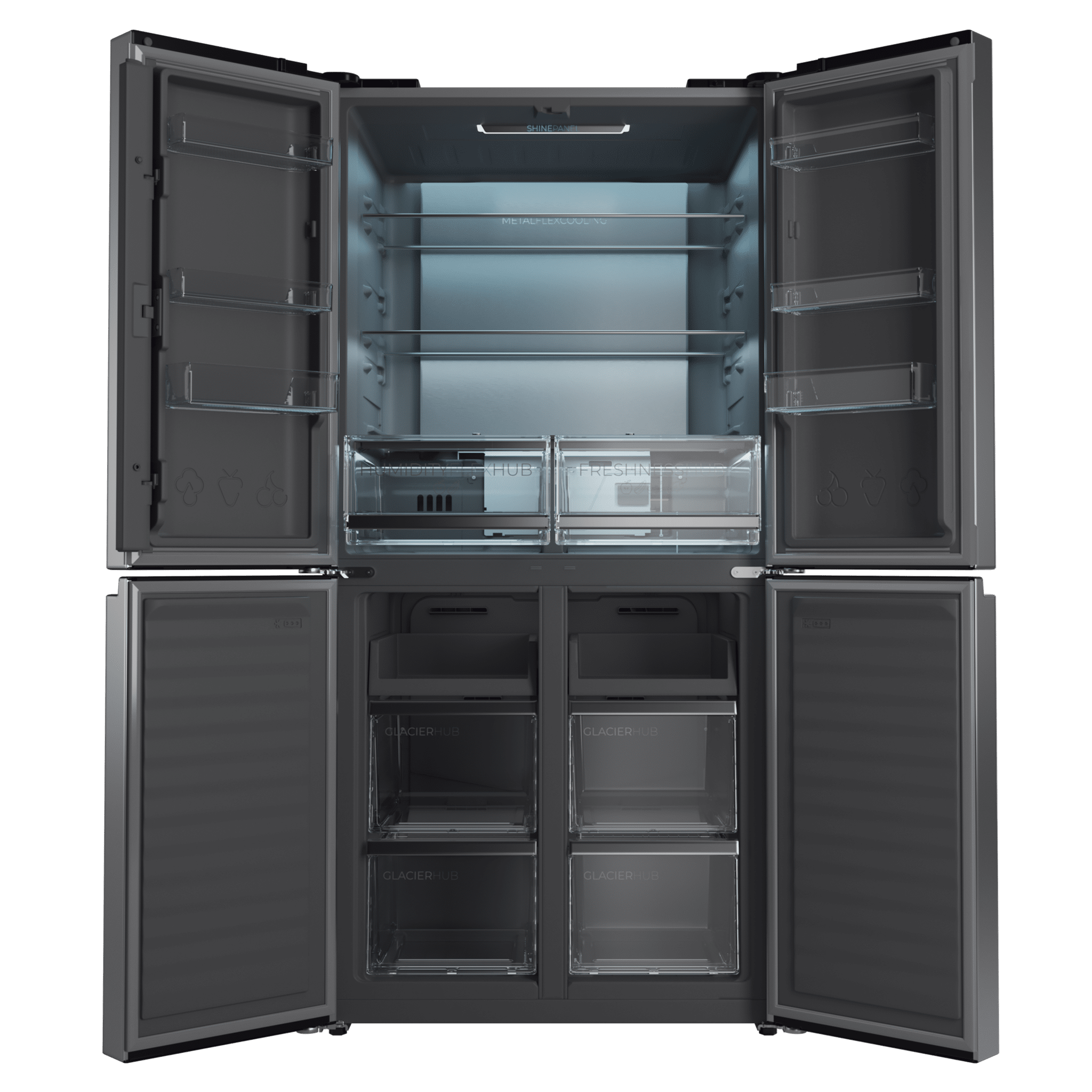 Frigorífico 4 Puertas Inox, 503 Litros, 177.5×85.3×69.8cm, Clase E, Compresor Inverter, Interior Gris, MetalFlexCooling, Cajón Temperatura Variable 0ºC a 7ºC, Cajón Regulación Humedad, Display a Color, NoFrost, MultiAirFlow, FastCooling, FastFreezing, Alarma, Modo ECO, Luz LED