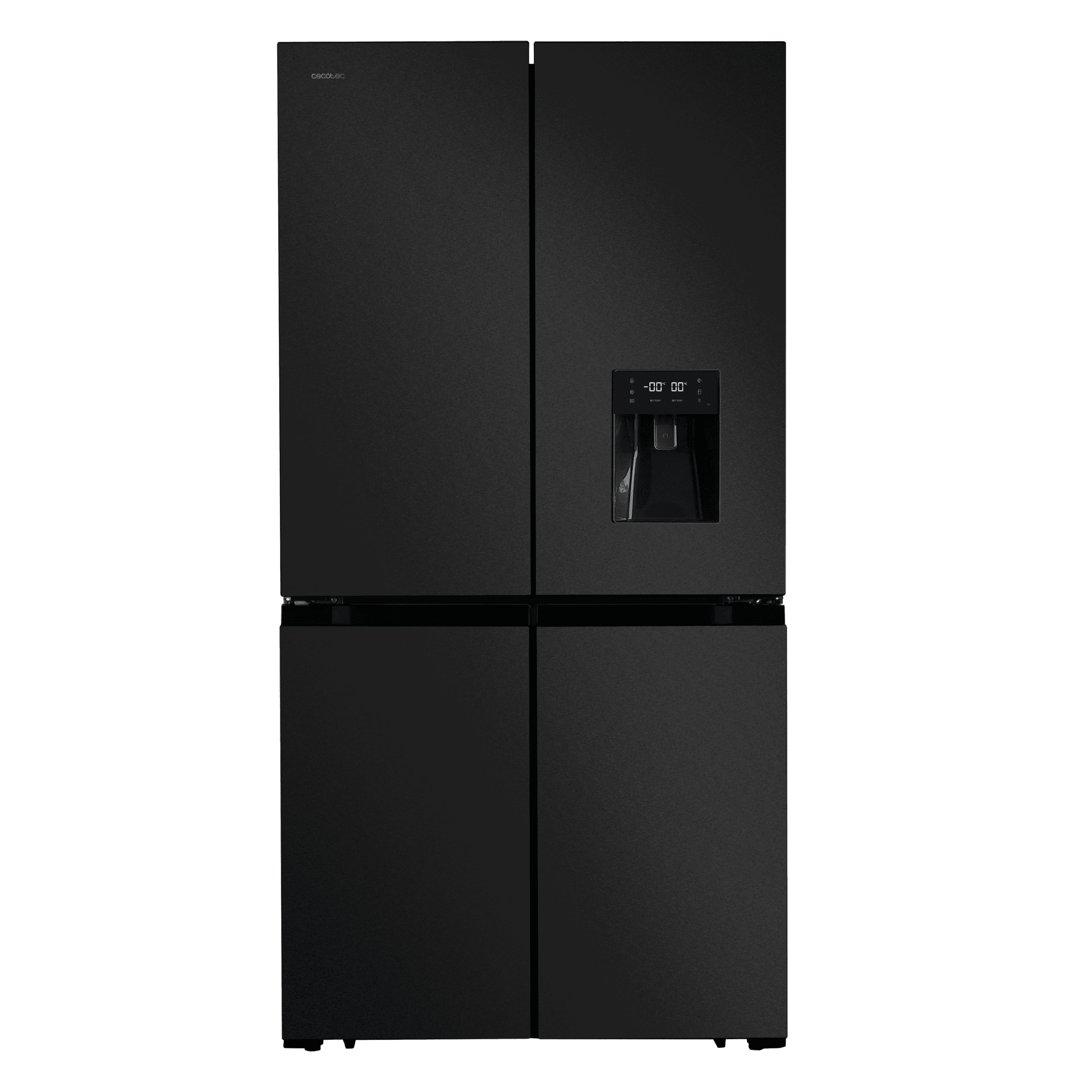 Frigorífico 4 puertas Cross Door con capacidad 564L. Motor Inverter Plus. Dispensador de agua. Metal cooling. Multi Airflow. Door Display. Fast freezing. Fast cooling. Clase climática SN/T . Total No Frost. Color Dark inox Clasifición energética E. Ancho 91.1 /Fondo 70,6 /Alto 183cm