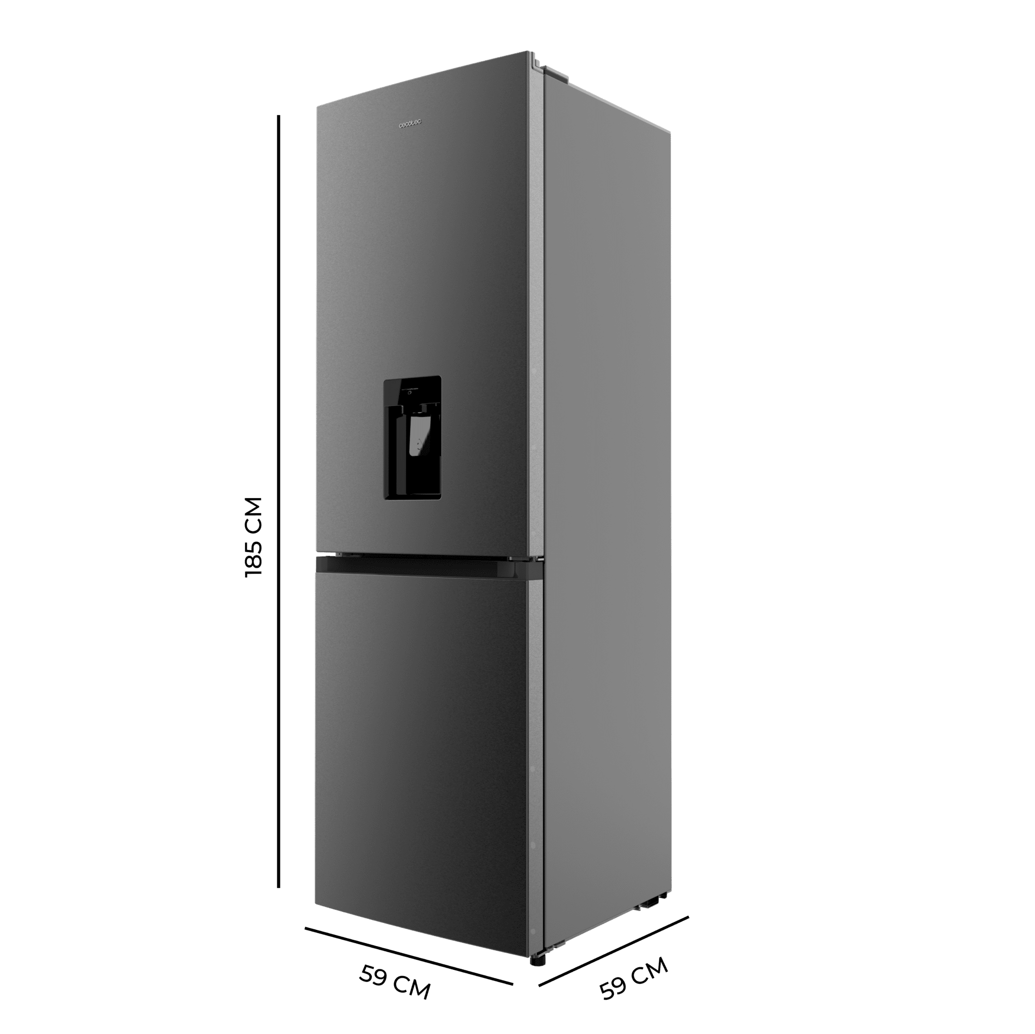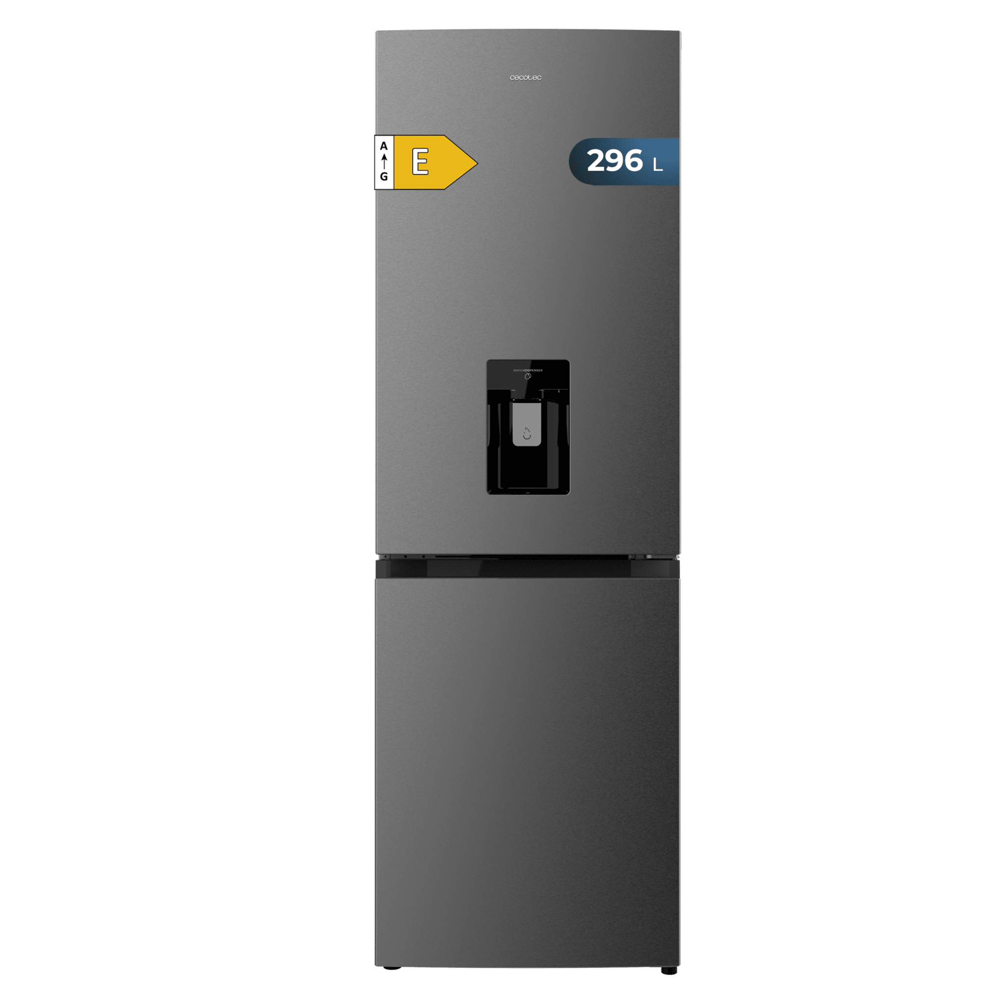 Frigorífico combi inox de 185x60cm, con dispensador de agua integrado, 296 Litros, DeFrost.