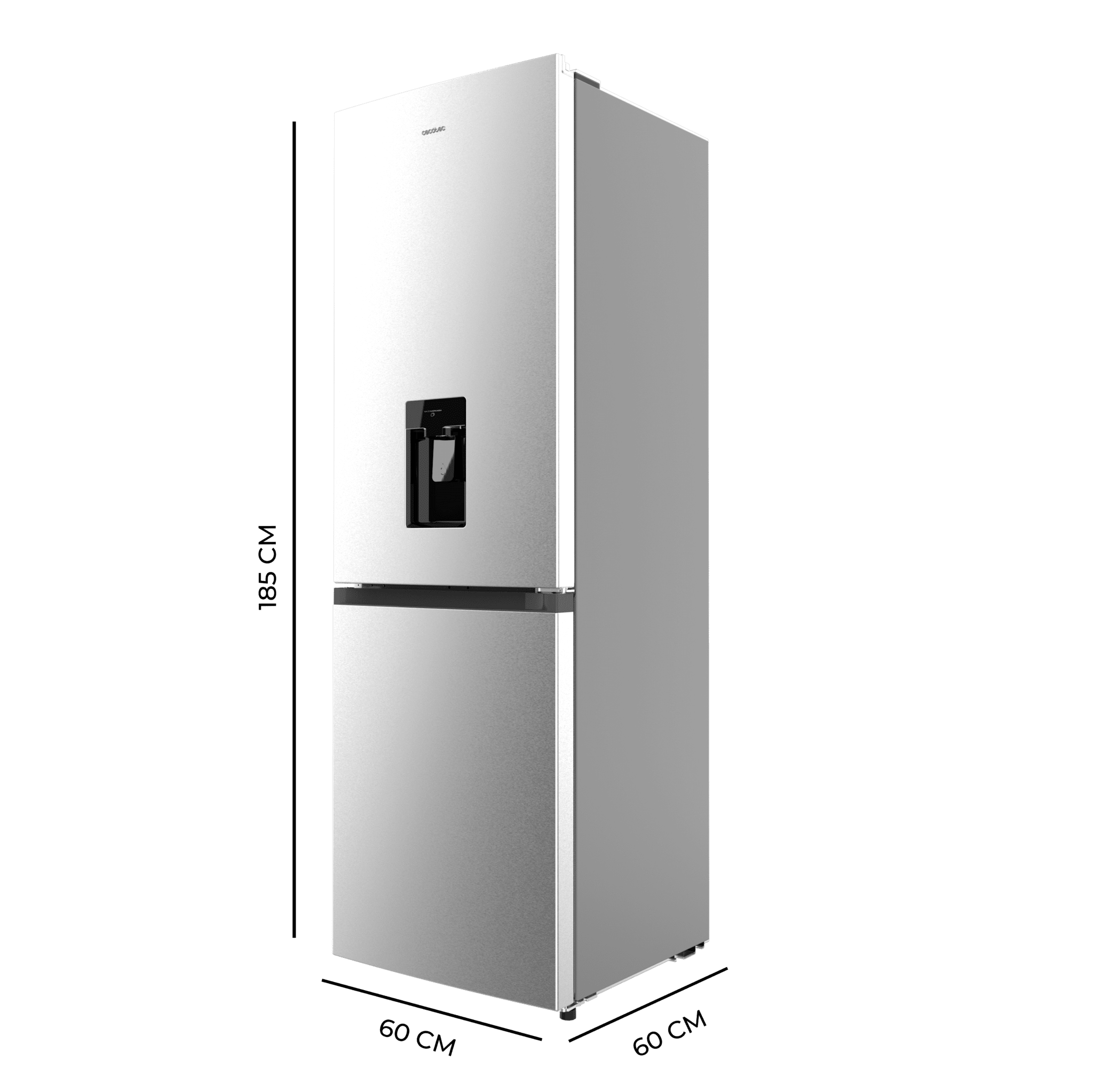 Frigorífico combi inox oscuro de 185x60cm, con dispensador de agua integrado, 296 Litros, DeFrost.