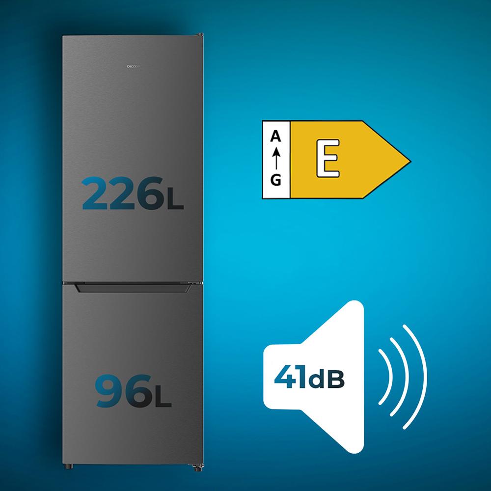 Combi con Capacidad 322 L. Multi Airflow. Total No Frost. Humidity/Crisper box, LED interior, Puerta reversible, Alarma de puerta, Control de temperatura. Color dark inox Clasifición energética E. Ancho 59 /Fondo 63,5 /Alto 185,5cm