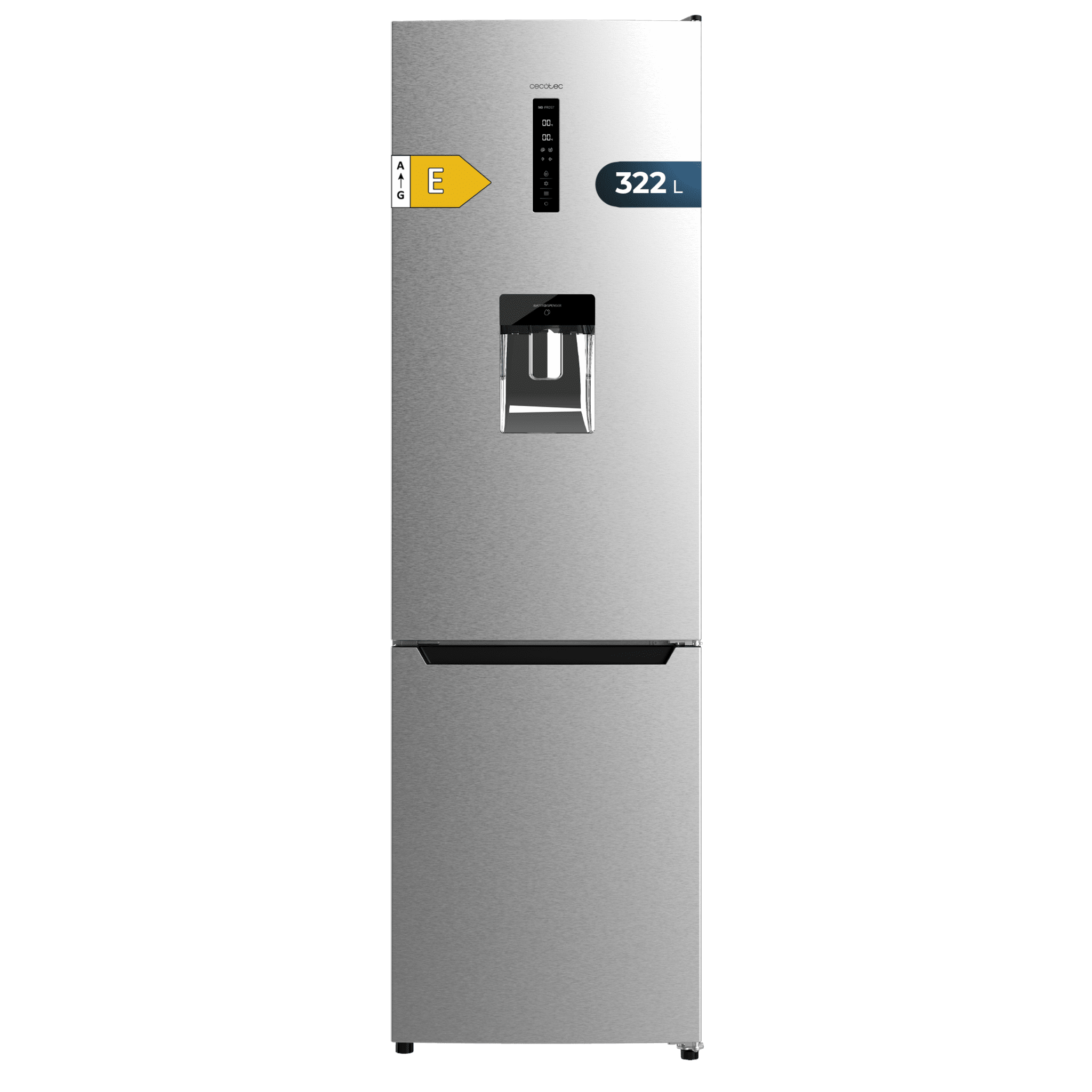 Frigorífico combi inox, 185,5cm de alto y 59,5 cm de ancho, con 322 litros de capacidad, compresor Inverter Plus, Total No Frost, dispensador de agua, clase energética D y con sistema Multi Air Flow. Además, cuenta con el modo Fast Cooling.