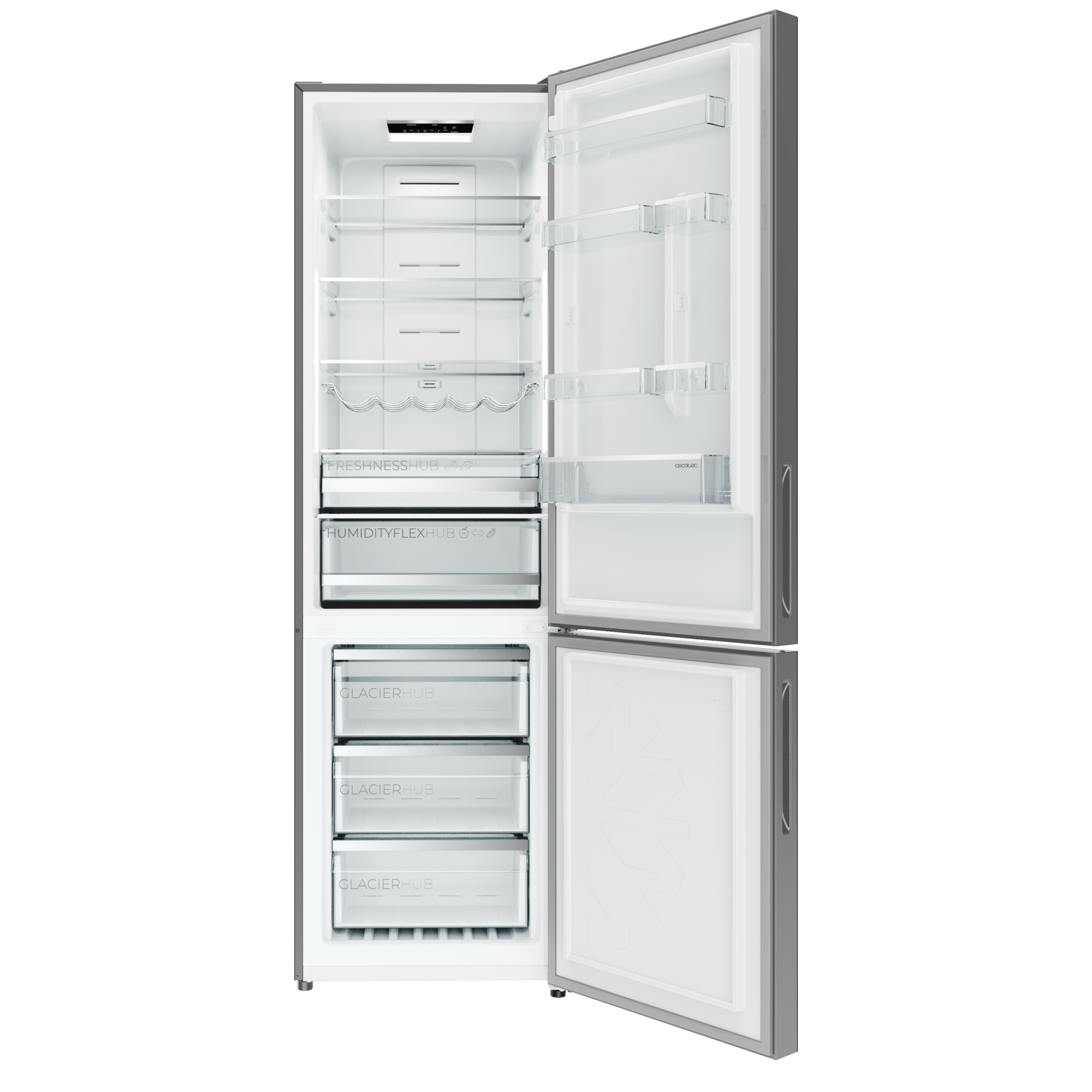 Combi con Capacidad 356 L. Multi Airflow. Total No Frost. Humidity/Crisper box, LED interior, Puerta reversible, Alarma de puerta, Control de temperatura, Inverter Plus. Modo eco, Modo vacaciones, fast freezing y cooling, Display en la puerta. Color cristal negro Clasifición energética D. Ancho 59,5 /Fondo 63,5 /Alto 200cm