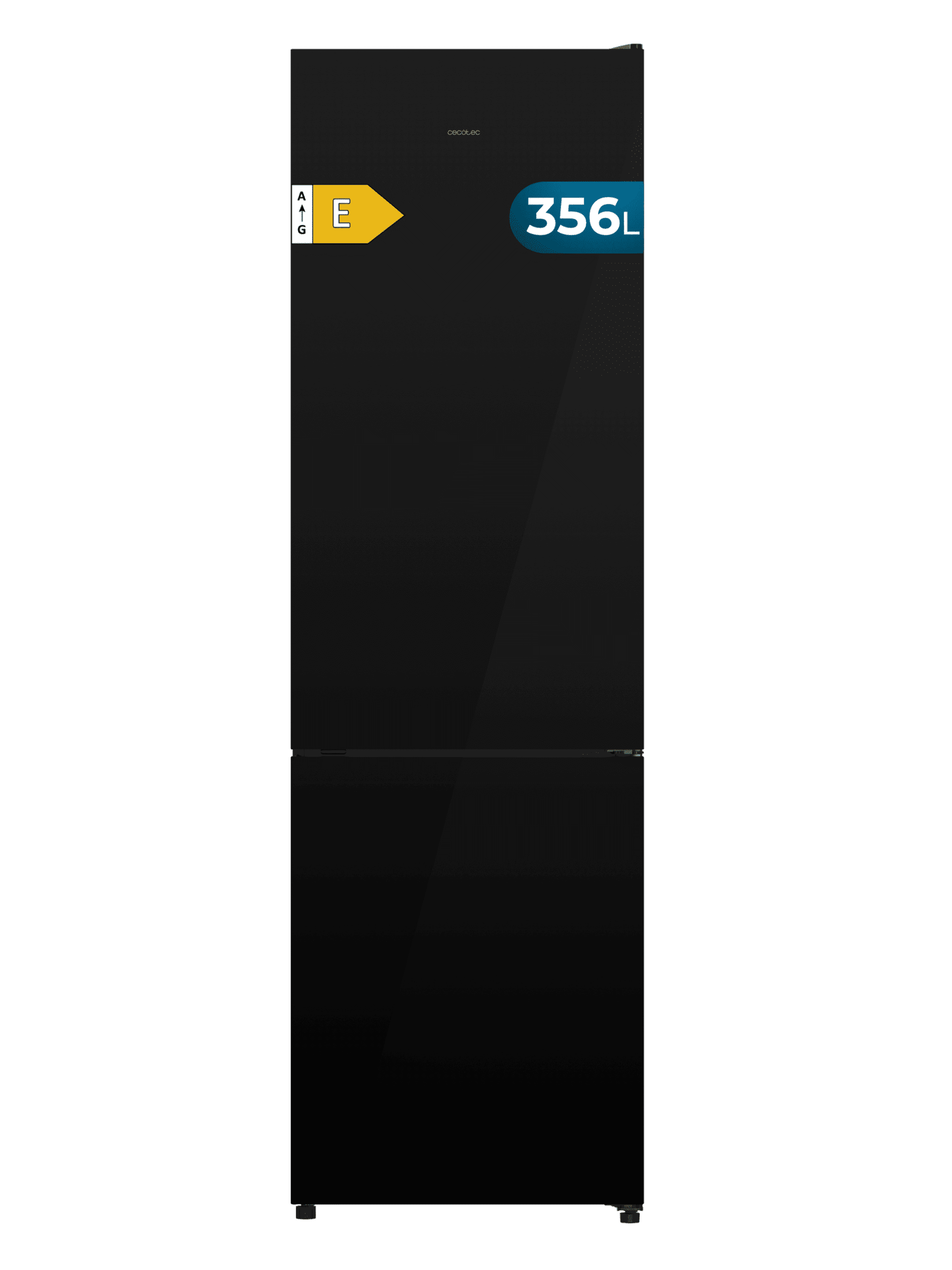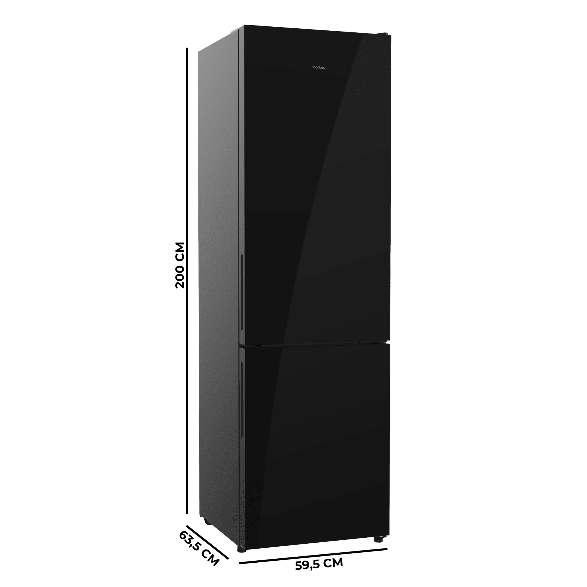 Frigorífico combi cristal negro, 200cm alto y 59,5cm ancho, capacidad 356L, Total No Frost y clase E.