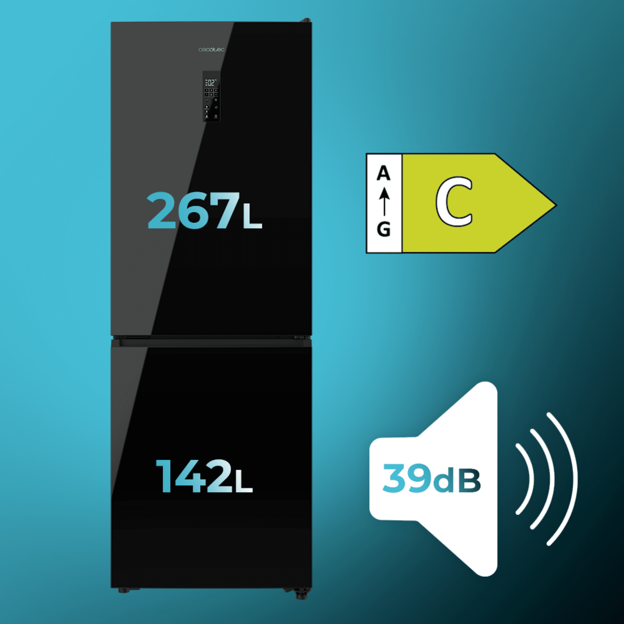 Frigorífico Combi Cristal Negro, MAX INSIDE con VIP tech, Cool Matrix, Cajón Temp. Variable, Total No Frost, Compresor Inverter Plus, 409 L, Clase C, 185×59,5cm.