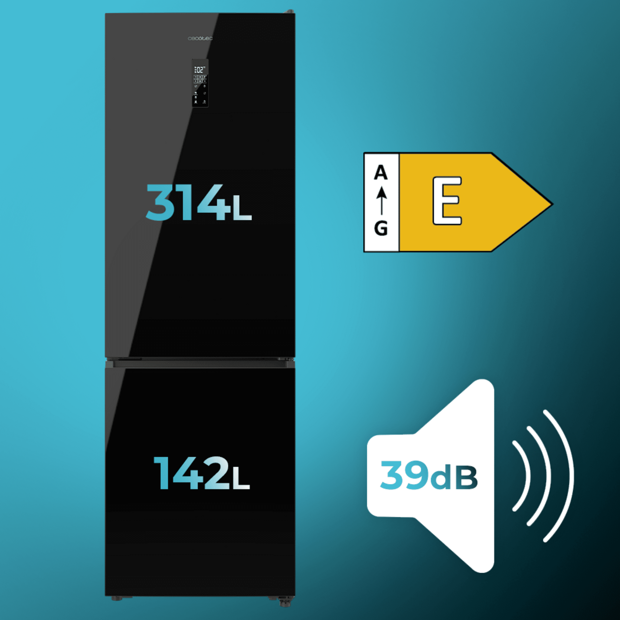Frigorífico Combi Cristal Negro, MAX INSIDE con VIP tech, Cool Matrix, Cajón Variable 6 temperaturas con control de humedad, Total No Frost, Compresor Inverter Plus, Multi AirFlow, 456 L, 201×59,5cm Funciones Fast Cooling y Fast Freezing, Modo Smart, Green HUB XL, Display Exterior, Puertas Reversibles, Botellero, Bandejas Cristal y Clase E.