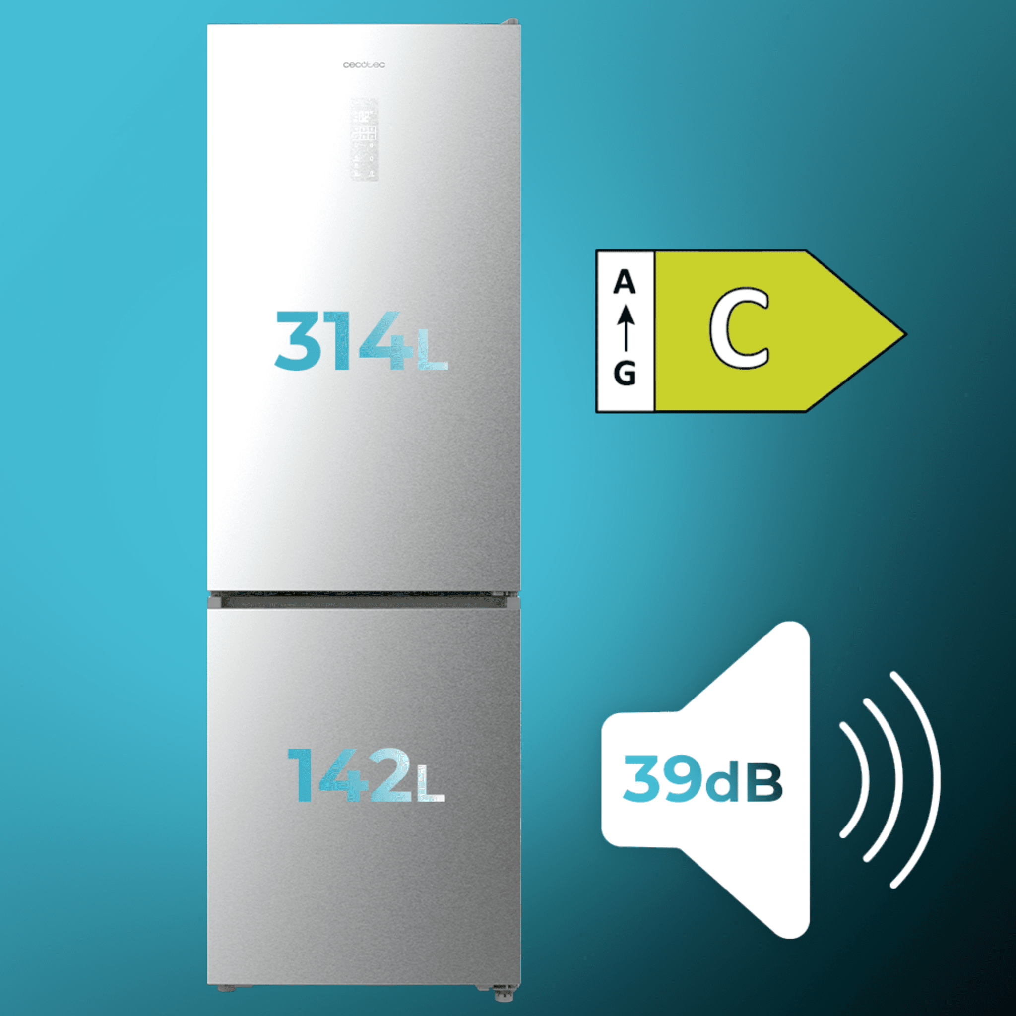 Frigorífico Combi Inox, MAX INSIDE con VIP tech, Cool Matrix, Cajón Temp. Variable, Total No Frost, Compresor Inverter Plus, 456 L, Clase C, 201×59,5cm.