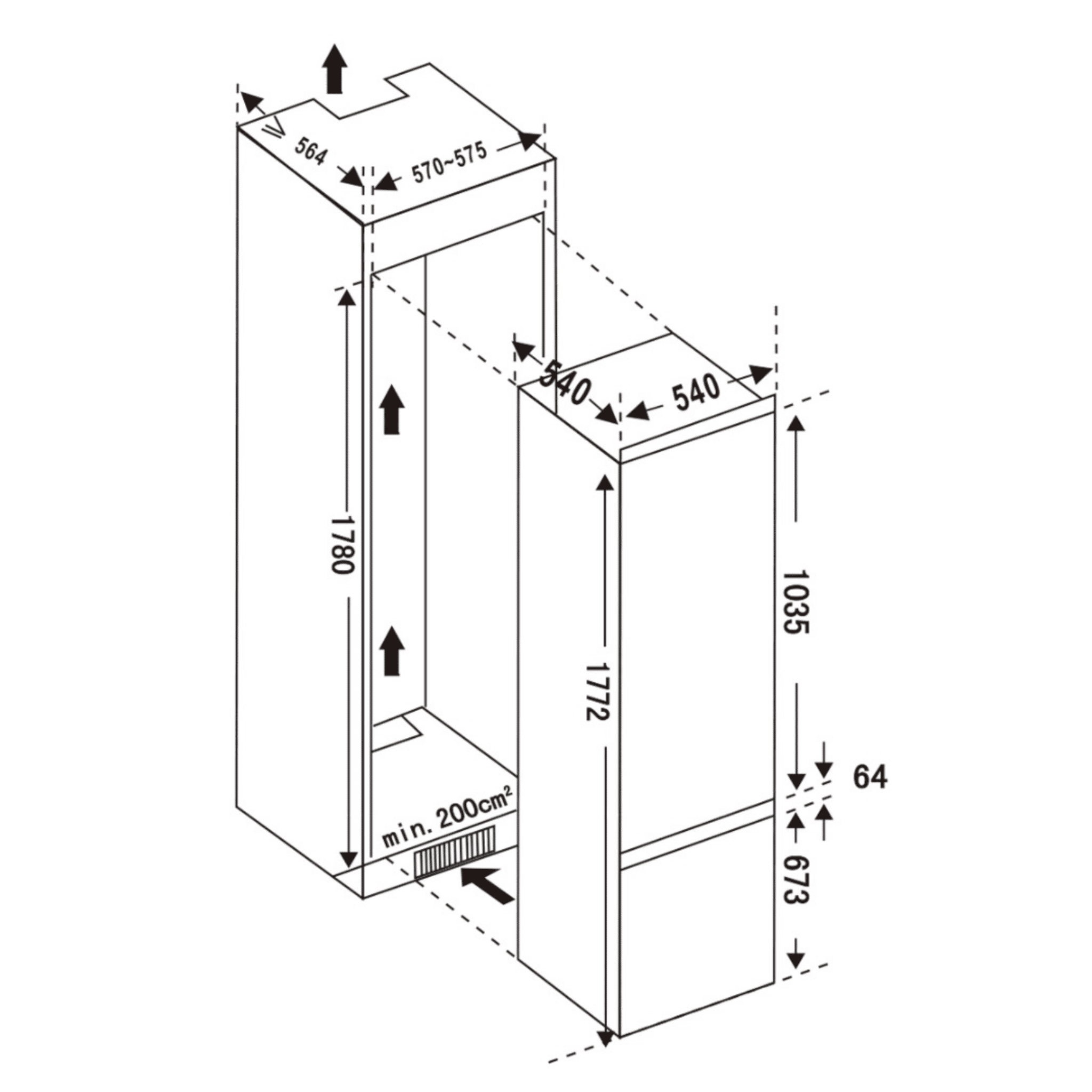 Frigorífico combi integrable puerta deslizante, 177x54cm, 232 Litros, Metal Cooling, NoFrost, Clase E