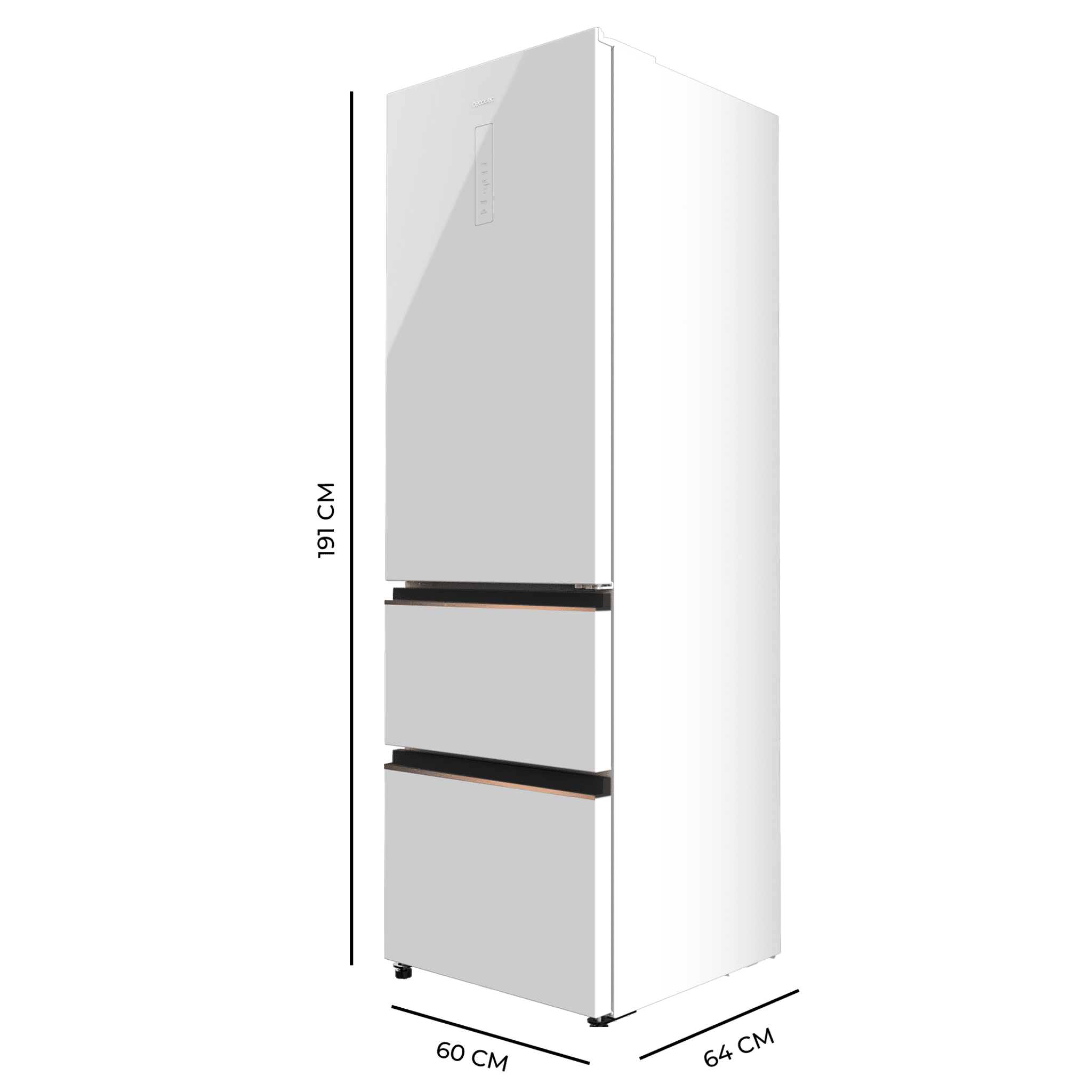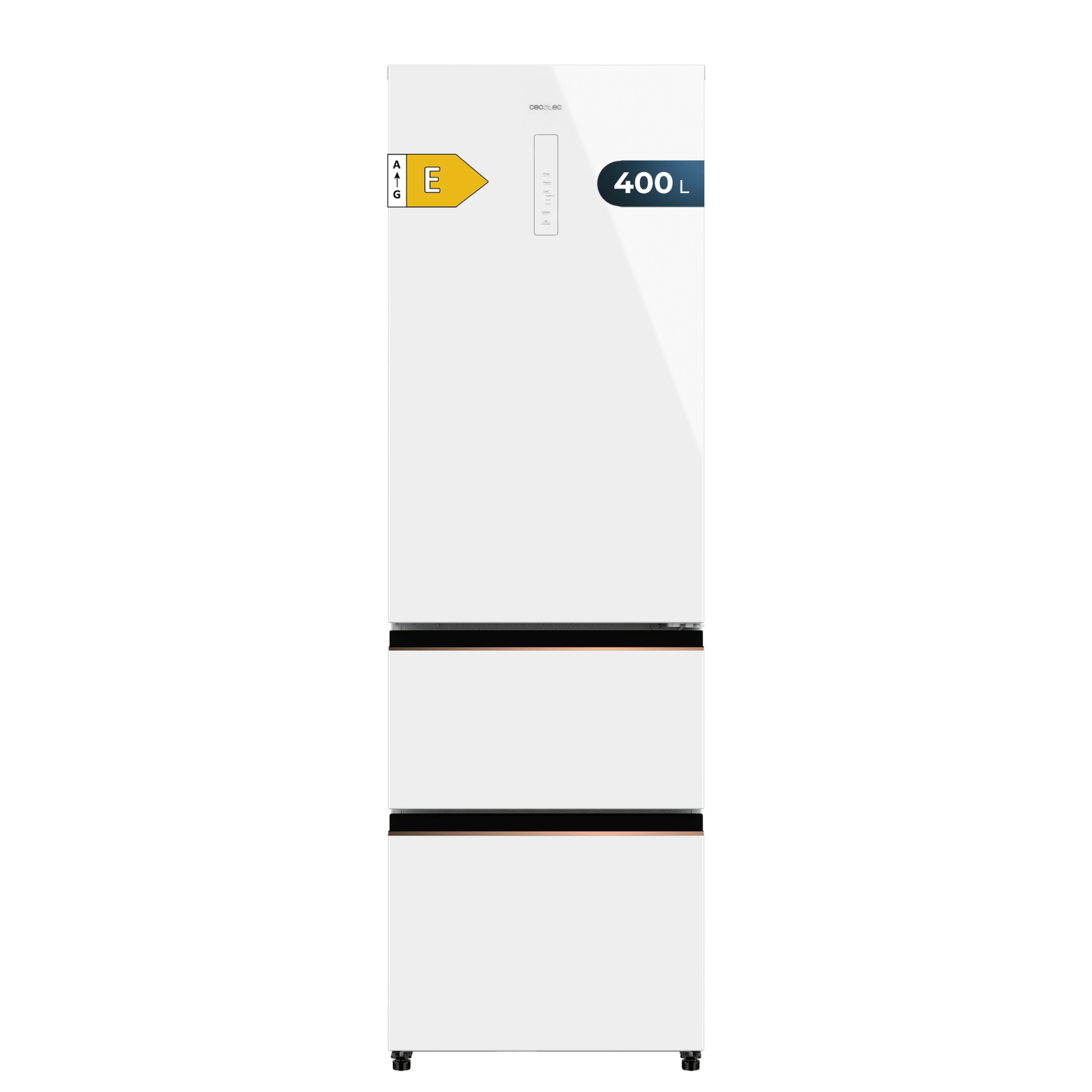 Frigorífico Combi French Door Cristal Blanco, 400 Litros, 60×191 cm, NoFrost, Multi AirFlow, Display, Interior Premium Color Gris, Cajón Convertible, Clase E, Motor Inverter, Fast Cooling, Fast Freezer, Modo ECO, Alarmas puerta abierta, temperatura y fallo.