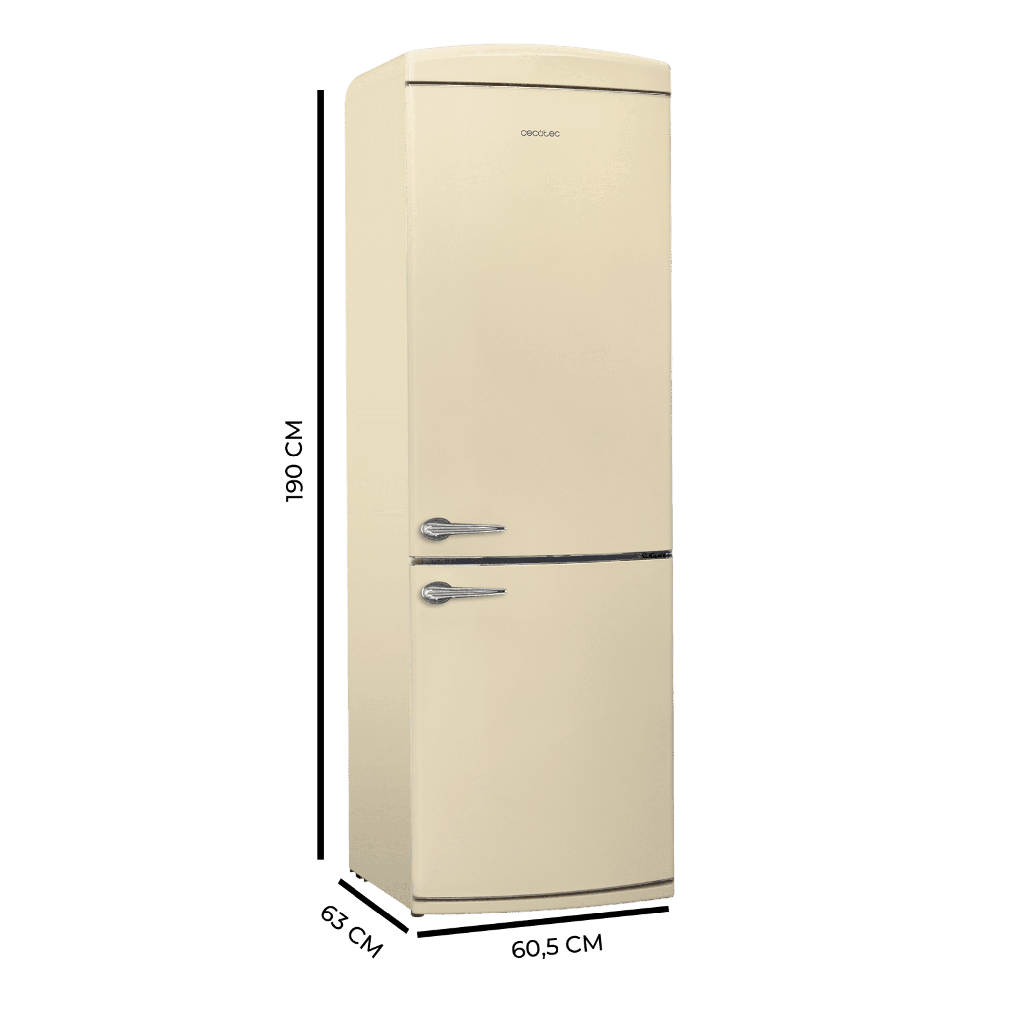Frigorífico retro combi beige, 190cm de alto y 60 de ancho, capacidad 294L, Total No Frost, clase energética E, Multi Cooling, Ultra Fresh, Convertible Box, Multi Air Flow, Fast Freezing, Modo Eco, Botellero y Alarma en puerta.