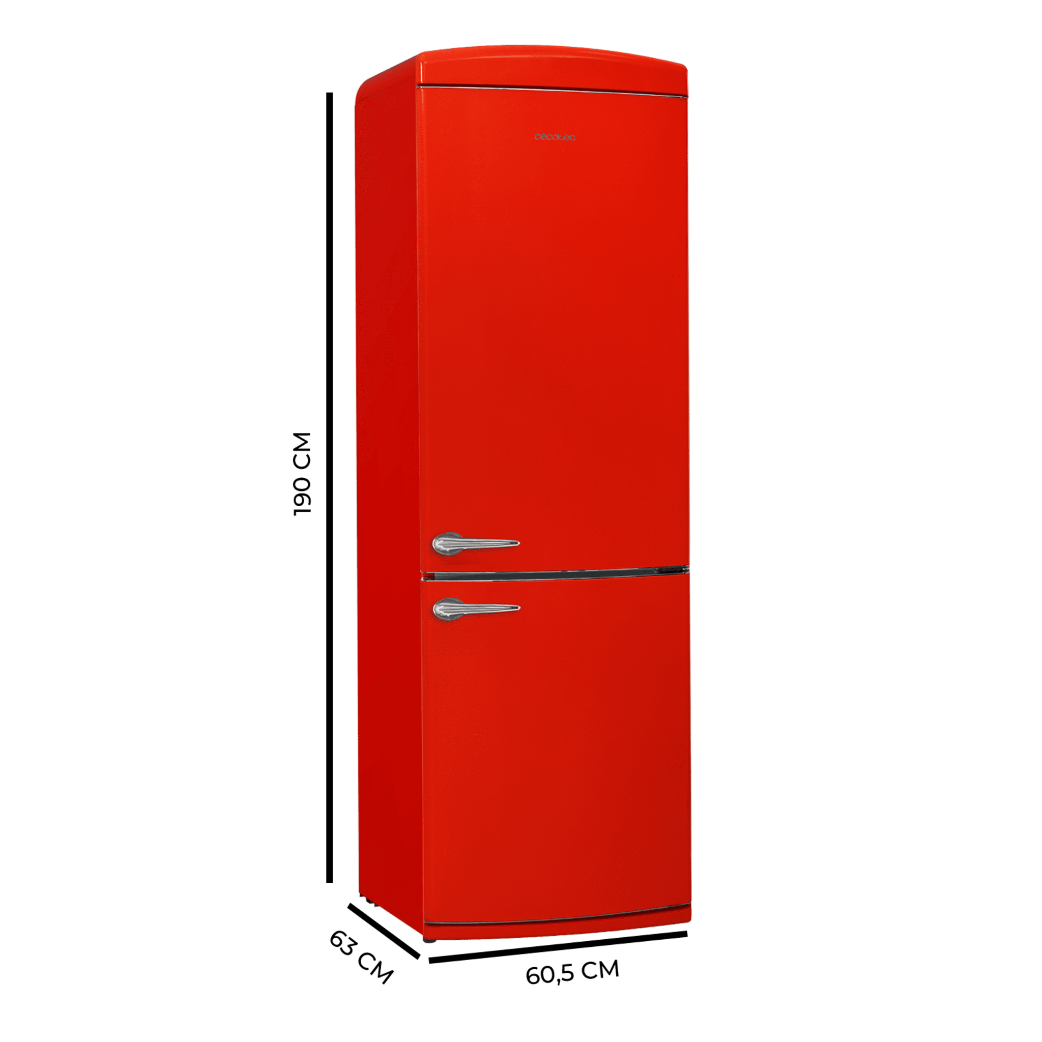 Frigorífico retro combi rojo, 190cm de alto y 60 de ancho, capacidad 294L, Total No Frost, clase energética E, Multi Cooling, Ultra Fresh, Convertible Box, Multi Air Flow, Fast Freezing, Modo Eco, Botellero y Alarma en puerta..