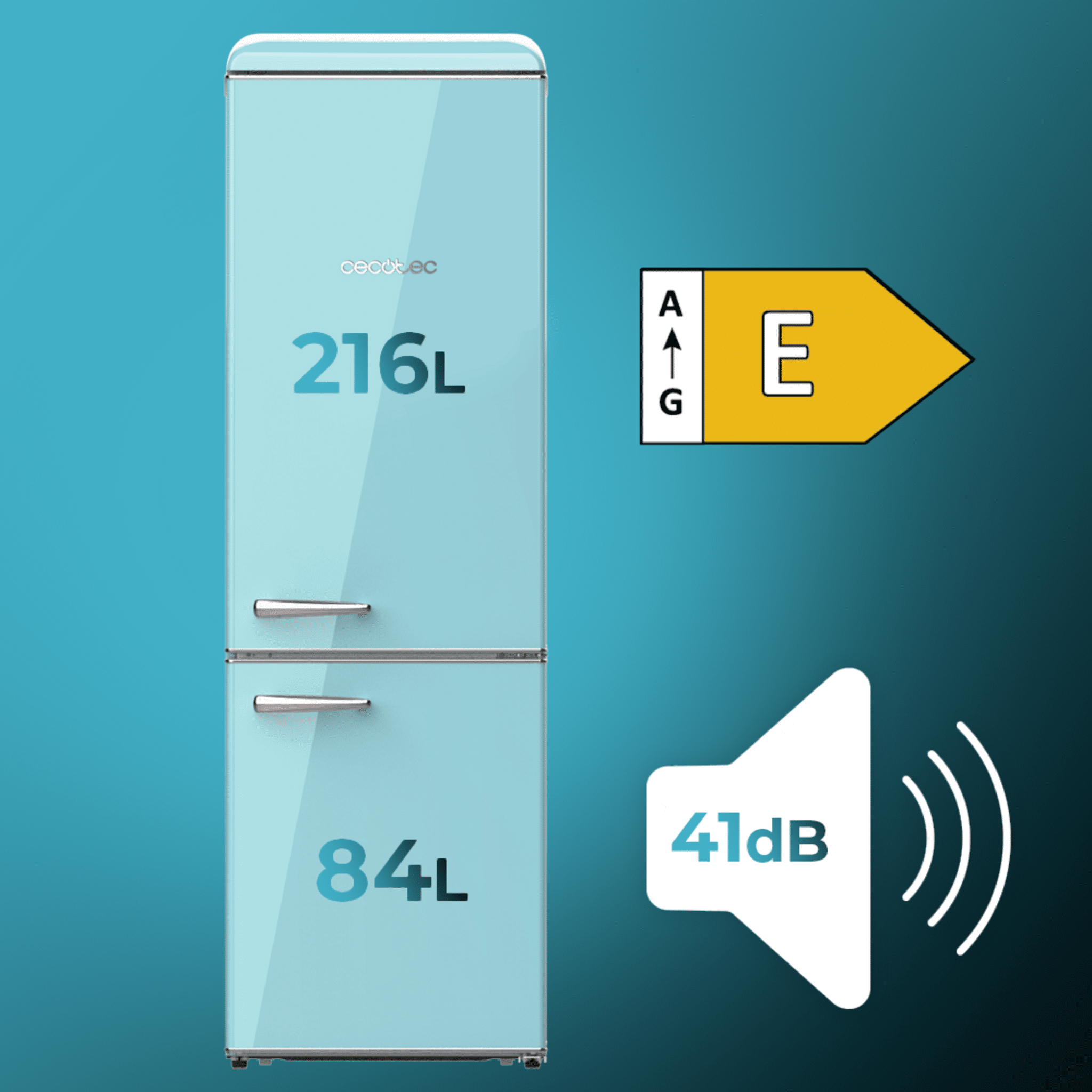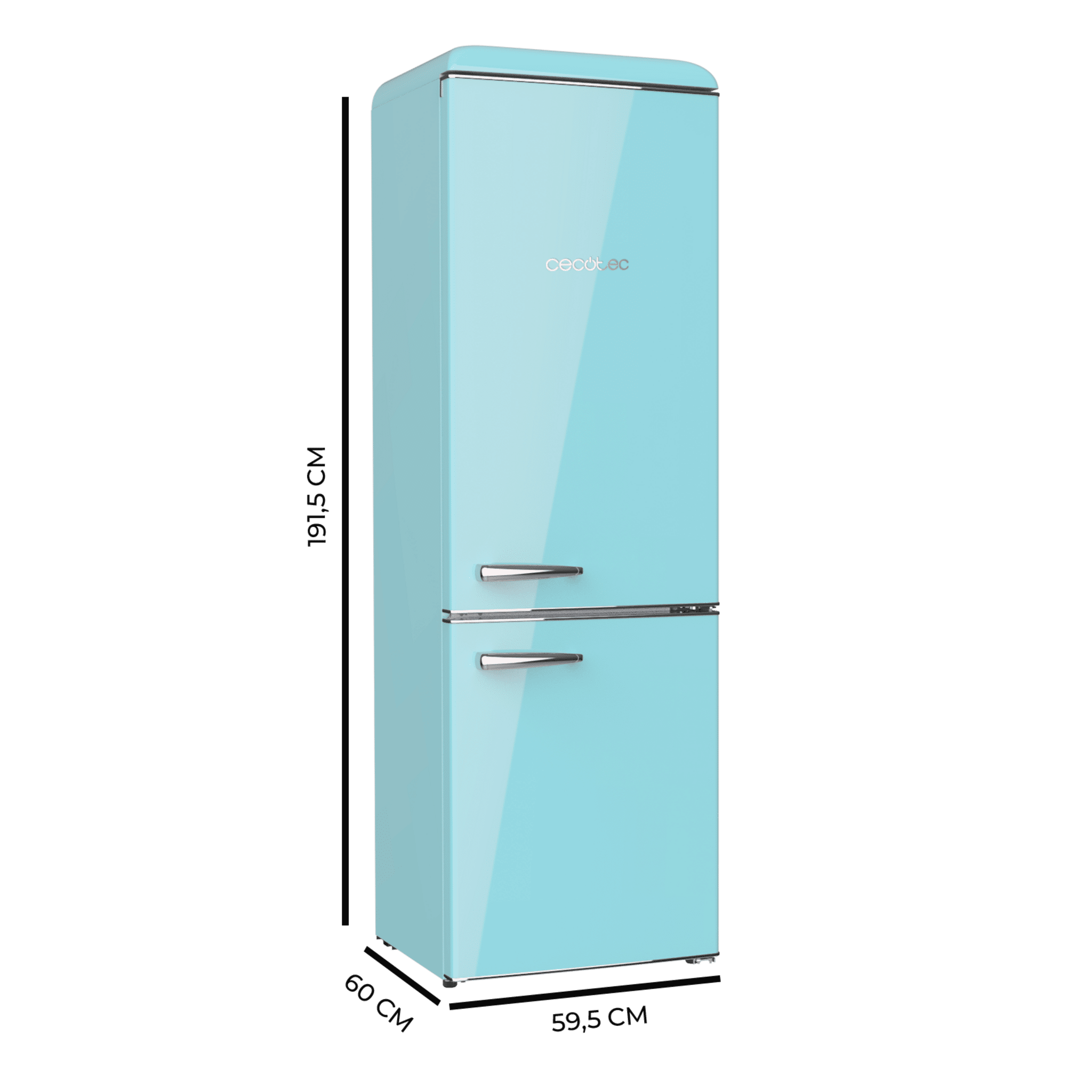 Frigorífico retro combi Origin Blue con capacidad de 300L, clase E, LED interior, tirador cromado, bandejas de cristal y abridor de botellines. Ancho 55,9 /Fondo 62,8 /Alto 192cm
