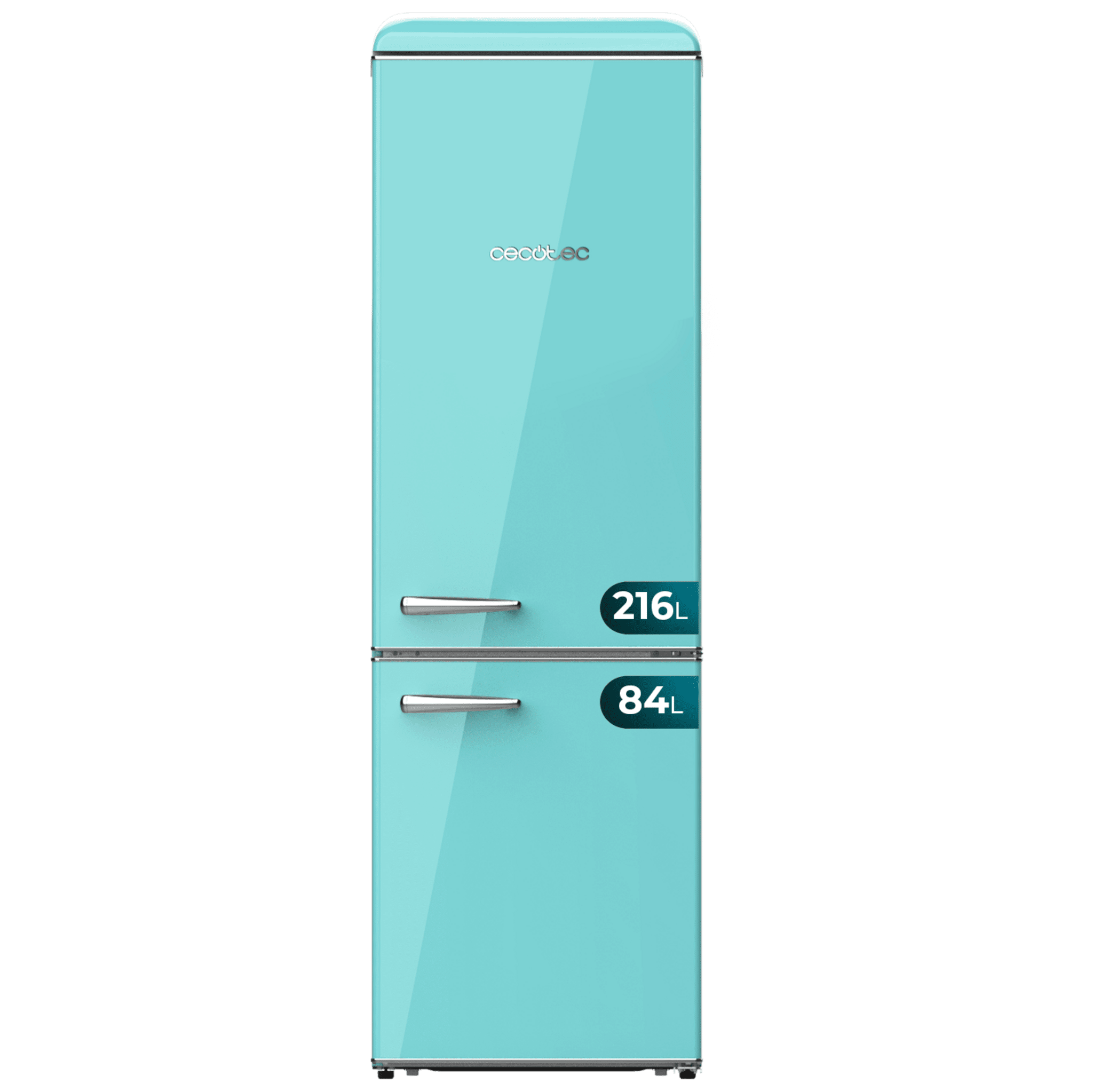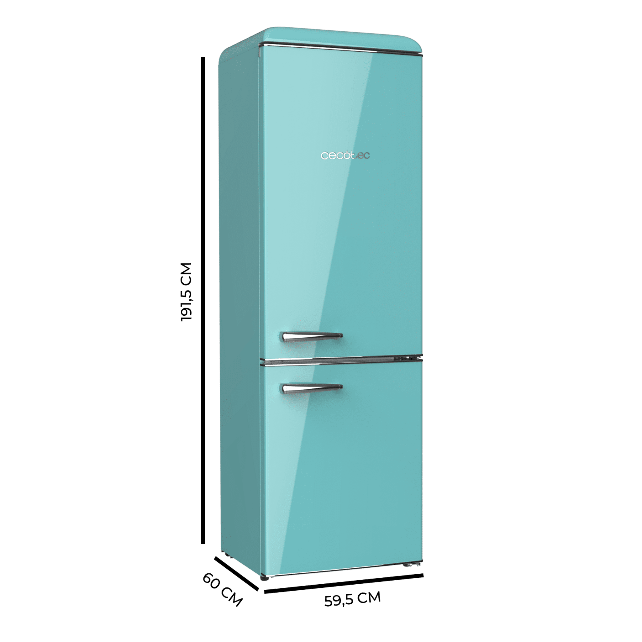 Frigorífico retro combi Origin Green con capacidad de 300L, clase E, LED interior, tirador cromado, bandejas de cristal y abridor de botellines. Ancho 55,9 /Fondo 62,8 /Alto 192cm