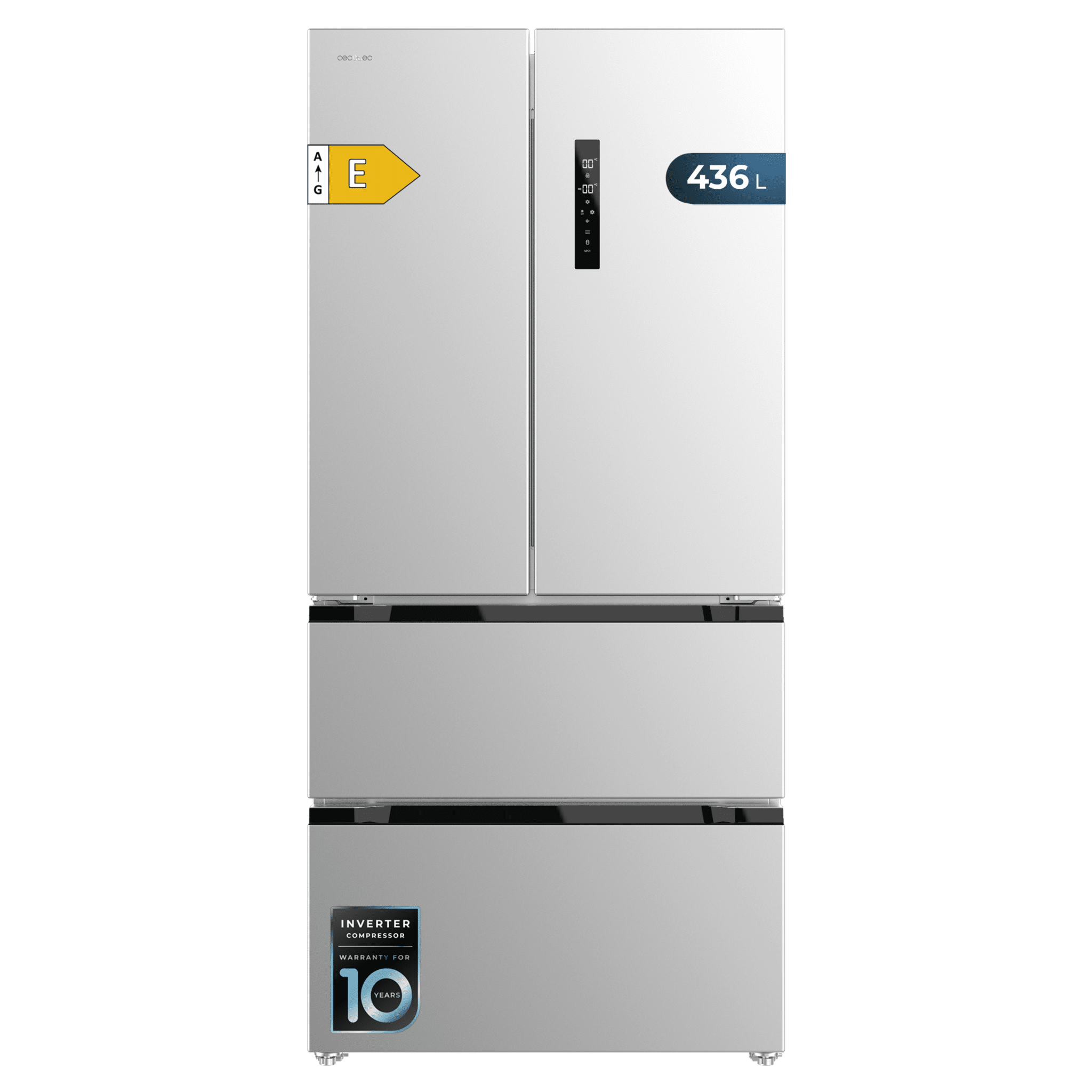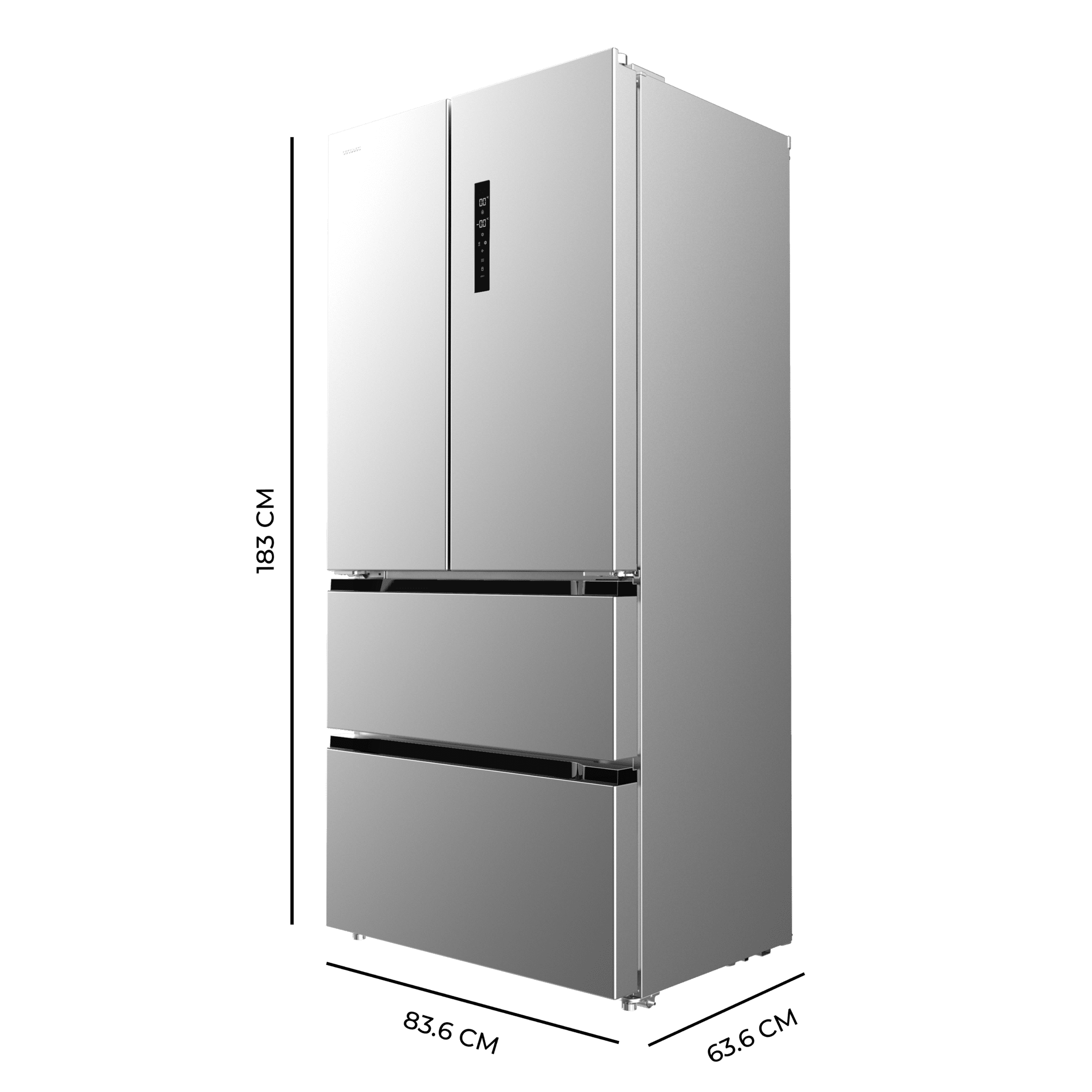 Frigorífico puerta francesa inox, 183 cm alto y 83,6 cm ancho, capacidad 463L, compresor Inverter Plus, Total No Frost y clase E.