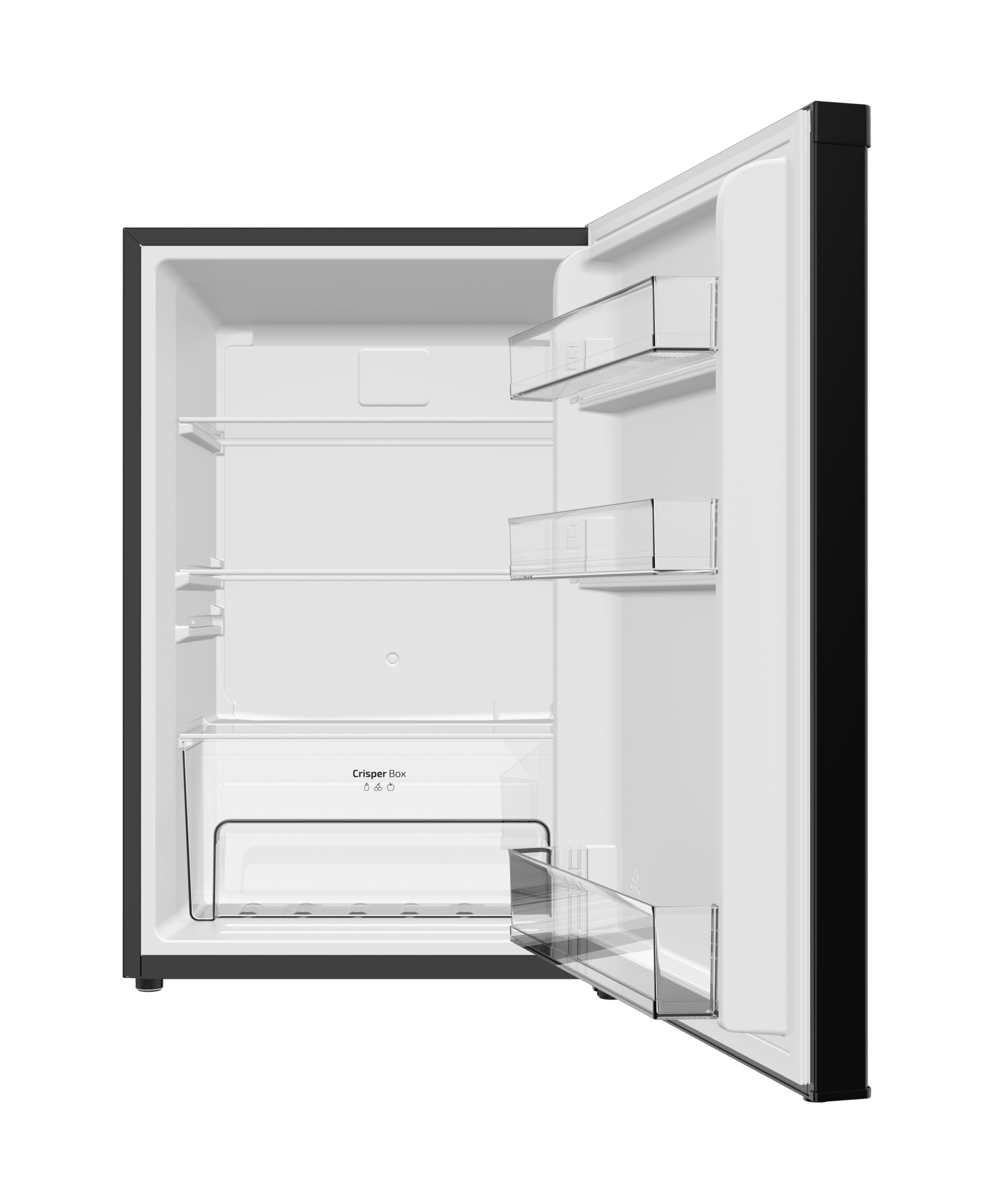 Mini frigorífico negro de 83,5 cm de alto y 55,1 cm de ancho con capacidad de 133L, clase energética E, Crisper Box, Luz LED interior, función defrost y control temperatura mecánico.