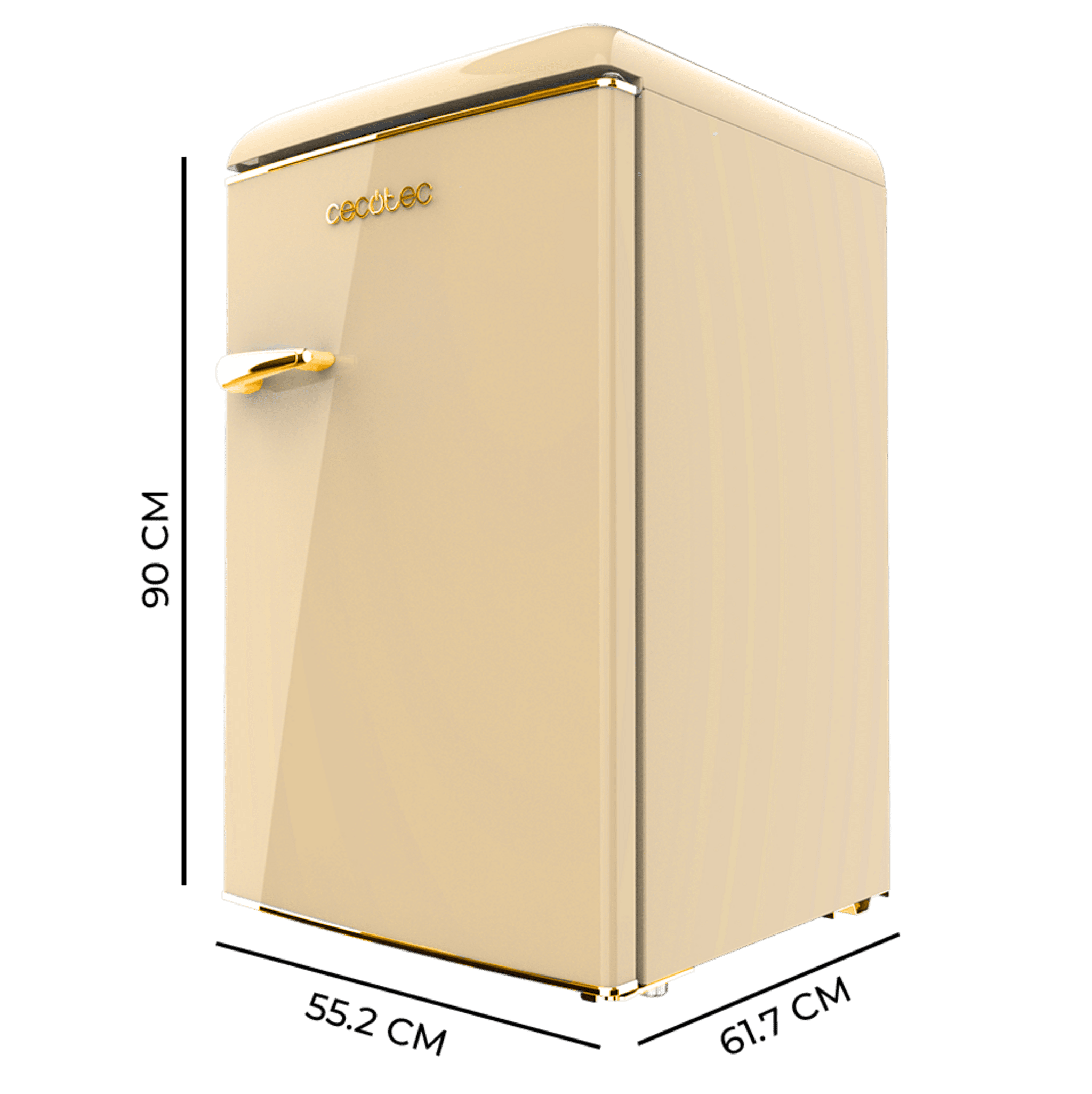 Mini frigorífico retro TT Origin Beige con capacidad de 110L, clase E, ICEBOX, LED interior, tirador cromado & bandejas cristal, abridor botellines. Ancho 55,2 /Fondo 61,7 /Alto 90cm