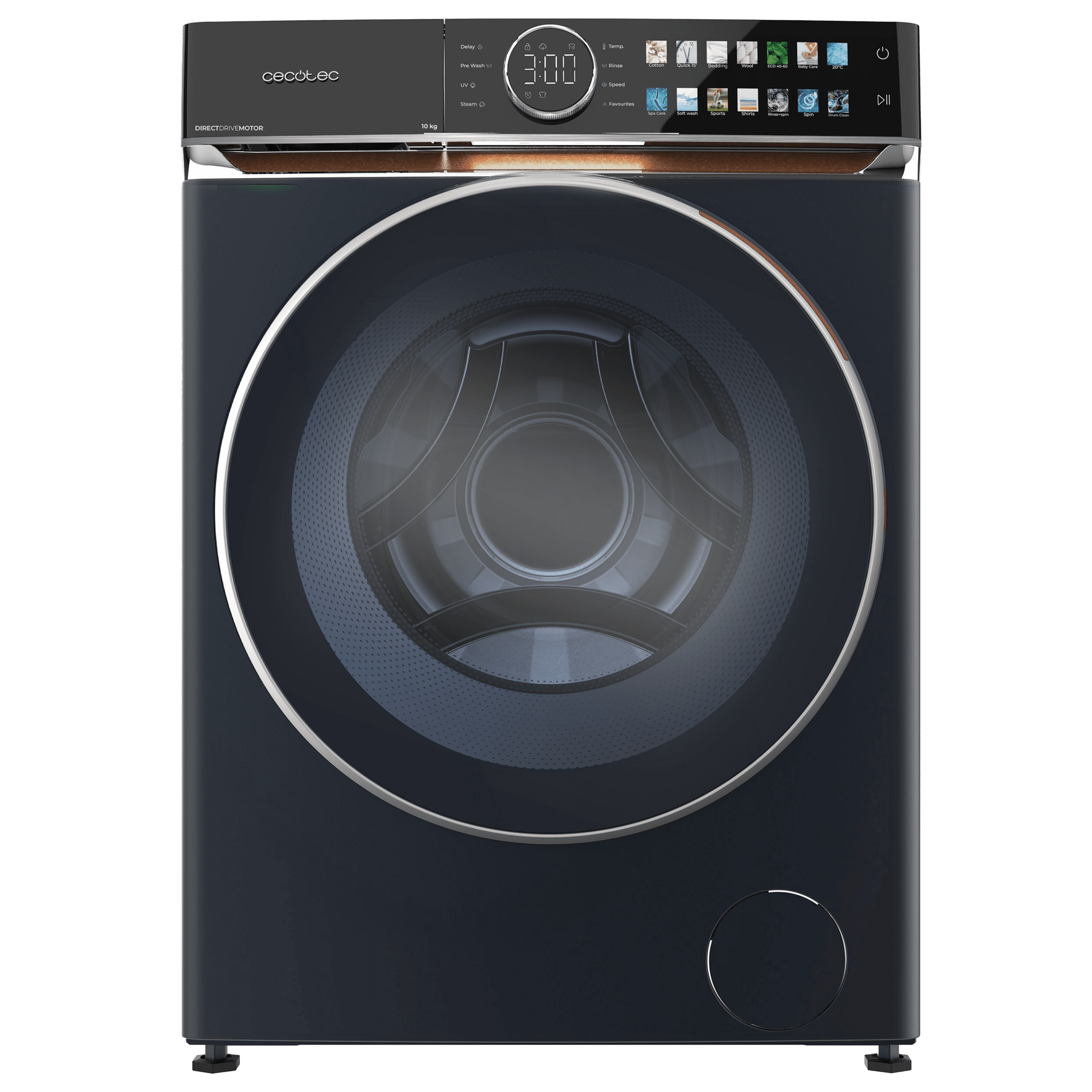 Lavadora de 10 kg color Blue y clase A, con motor Direct Drive y 1400 rpm. Con diseño Display Full Colour con knob TFT y acabados en imitación cuero, puerta XXL, Luz Interior UV y funciones SteamMax, Spa Care, Delay End, Stop&Go, Drum Clean, Door Look y My Fav