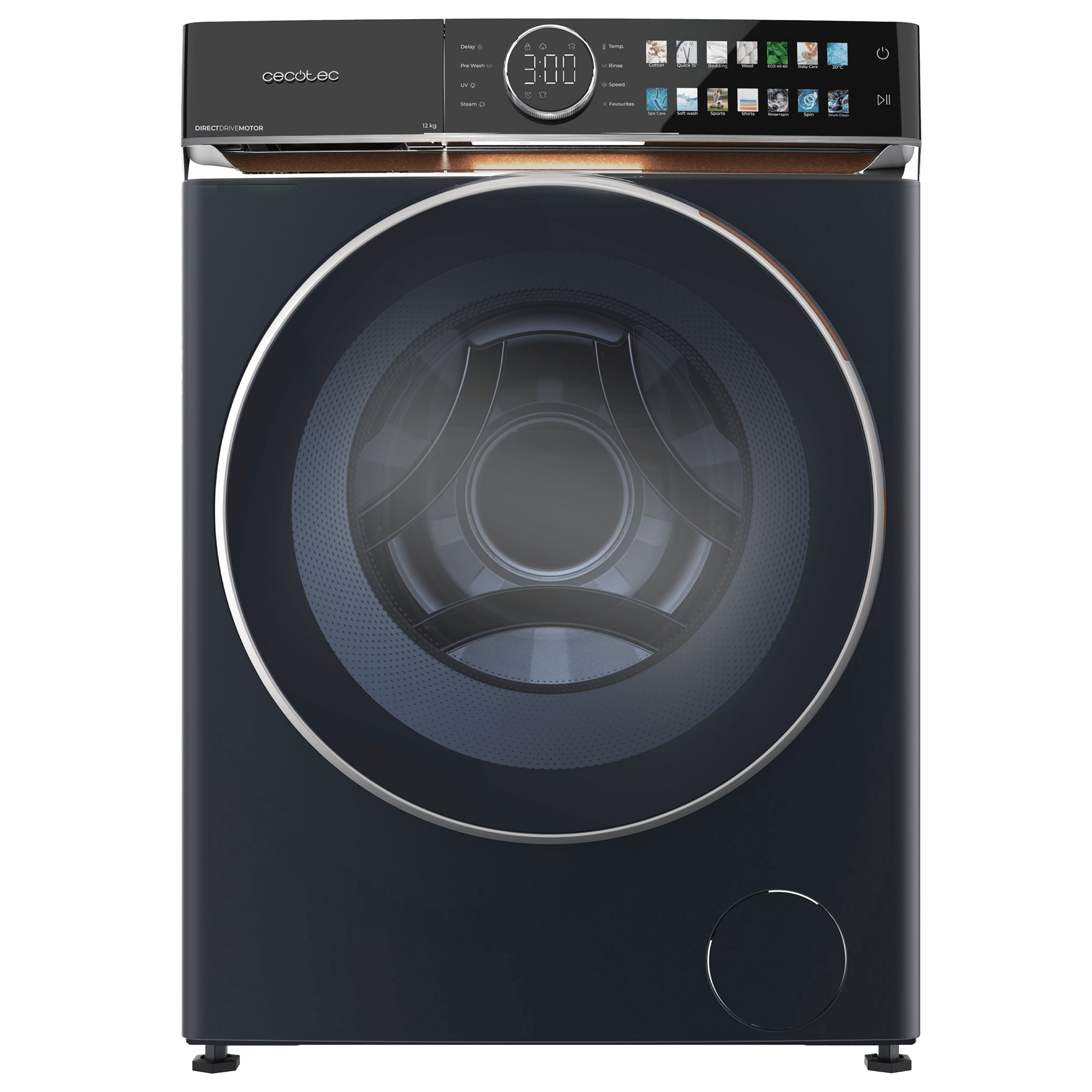 Lavadora de 12 kg color Blue y clase A, con motor Direct Drive y 1400 rpm. Con diseño Display Full Colour con knob TFT y acabados en imitación cuero, puerta XXL, Luz Interior UV y funciones SteamMax, Spa Care, Delay End, Stop&Go, Drum Clean, Door Look y My Fav