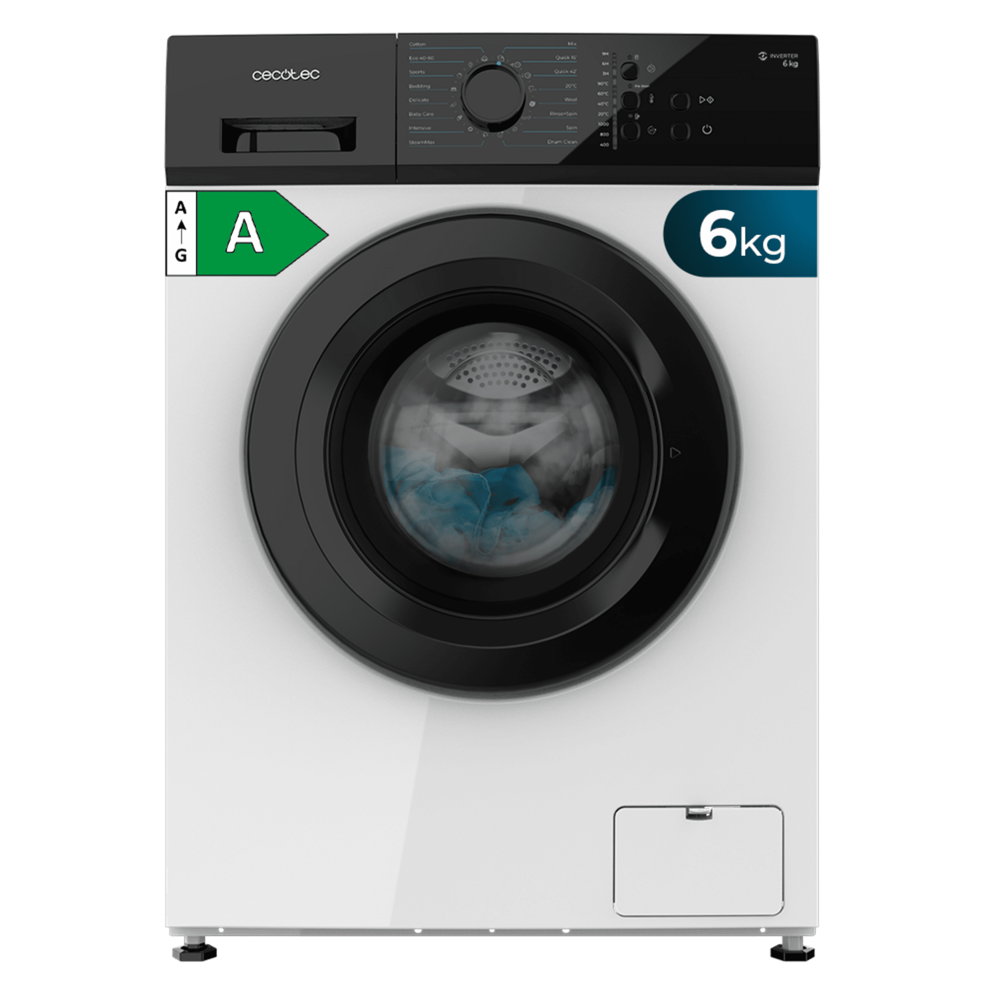 Lavadora de 6 kg de capacidad, Clase A, 1000 rpm, Motor Inverter Plus, 16 programas, con función vapor SteamMax, Spa Care, Drum Clean, Delay Start, KidLock, Pre-lavado y programa rápido 15′