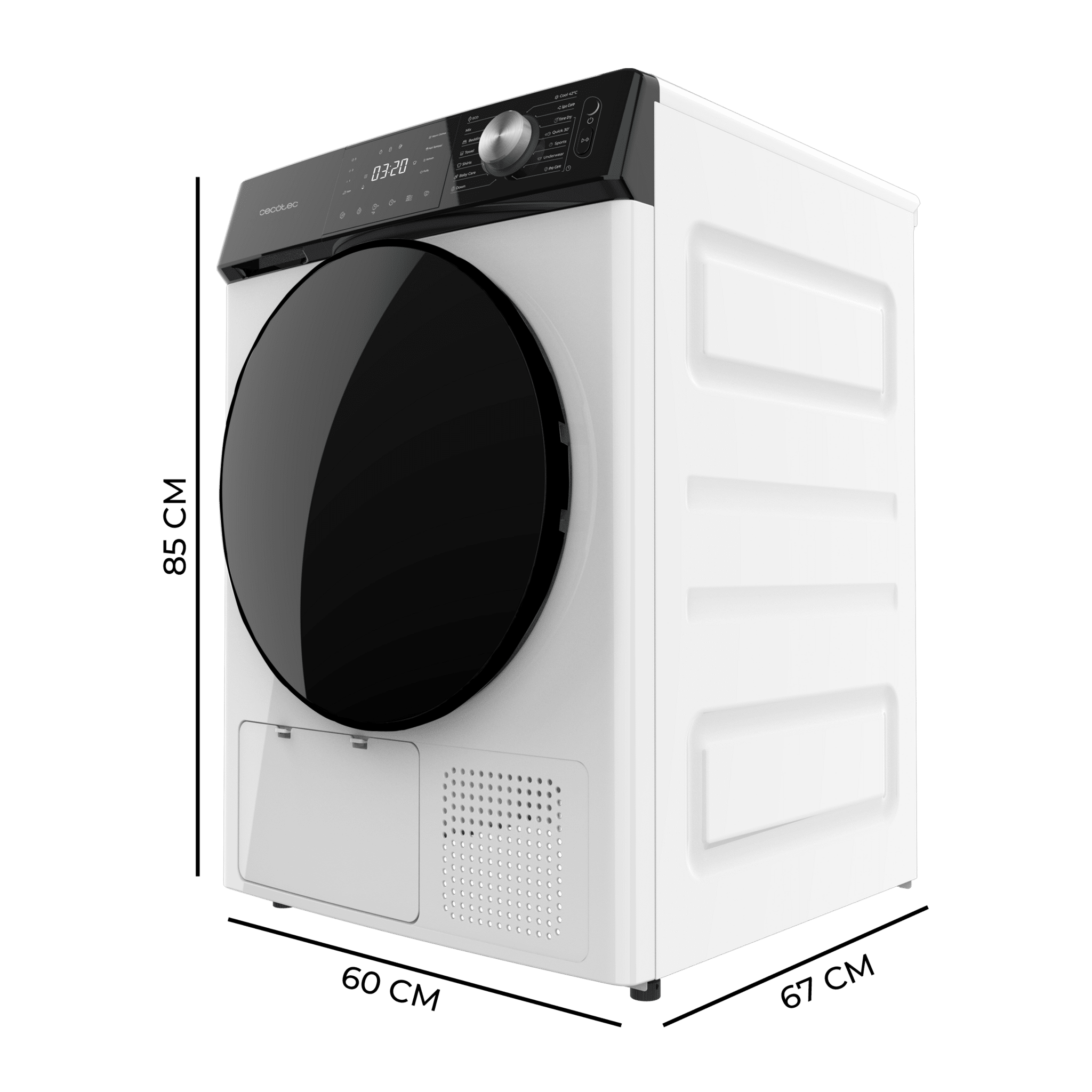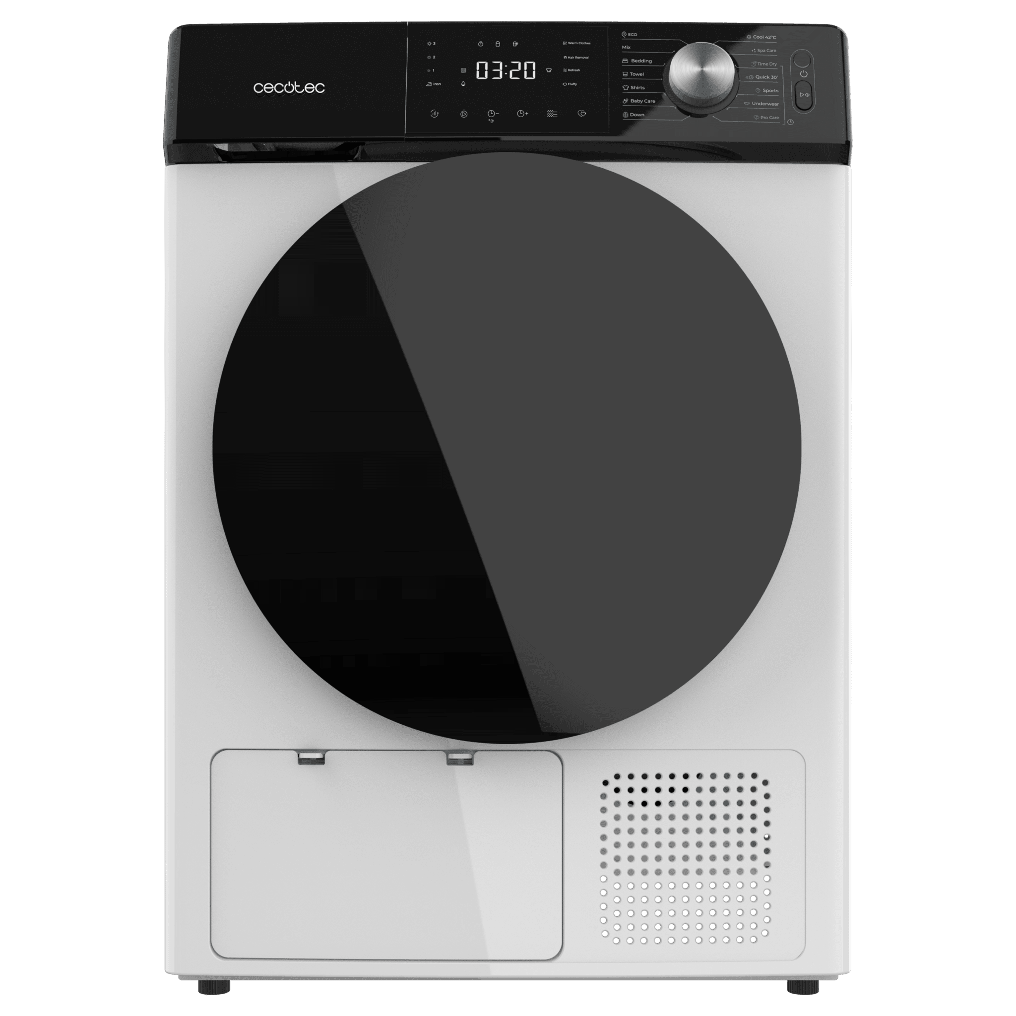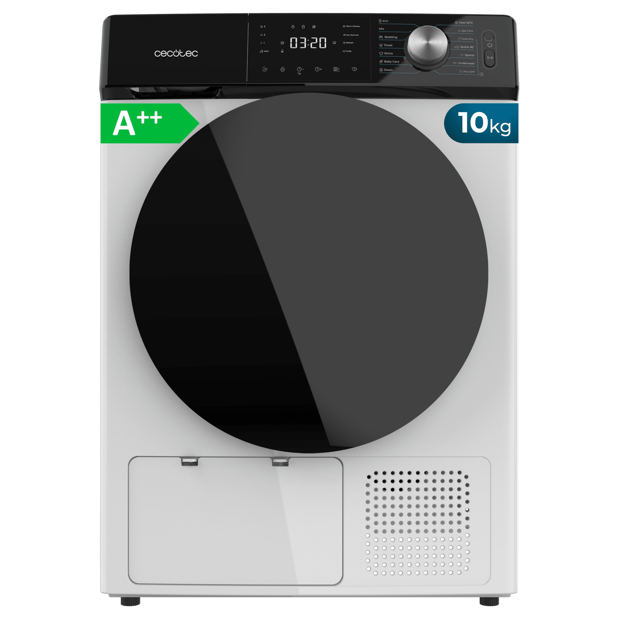 Secadora bomba de calor blanca con capacidad de 10kg, clase A++, 14 programas y secado automático.