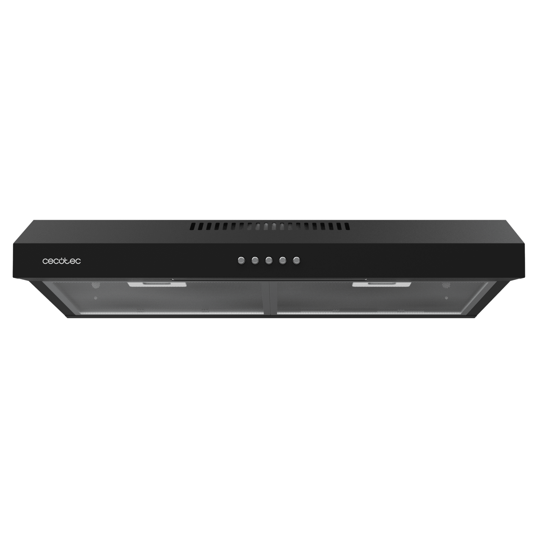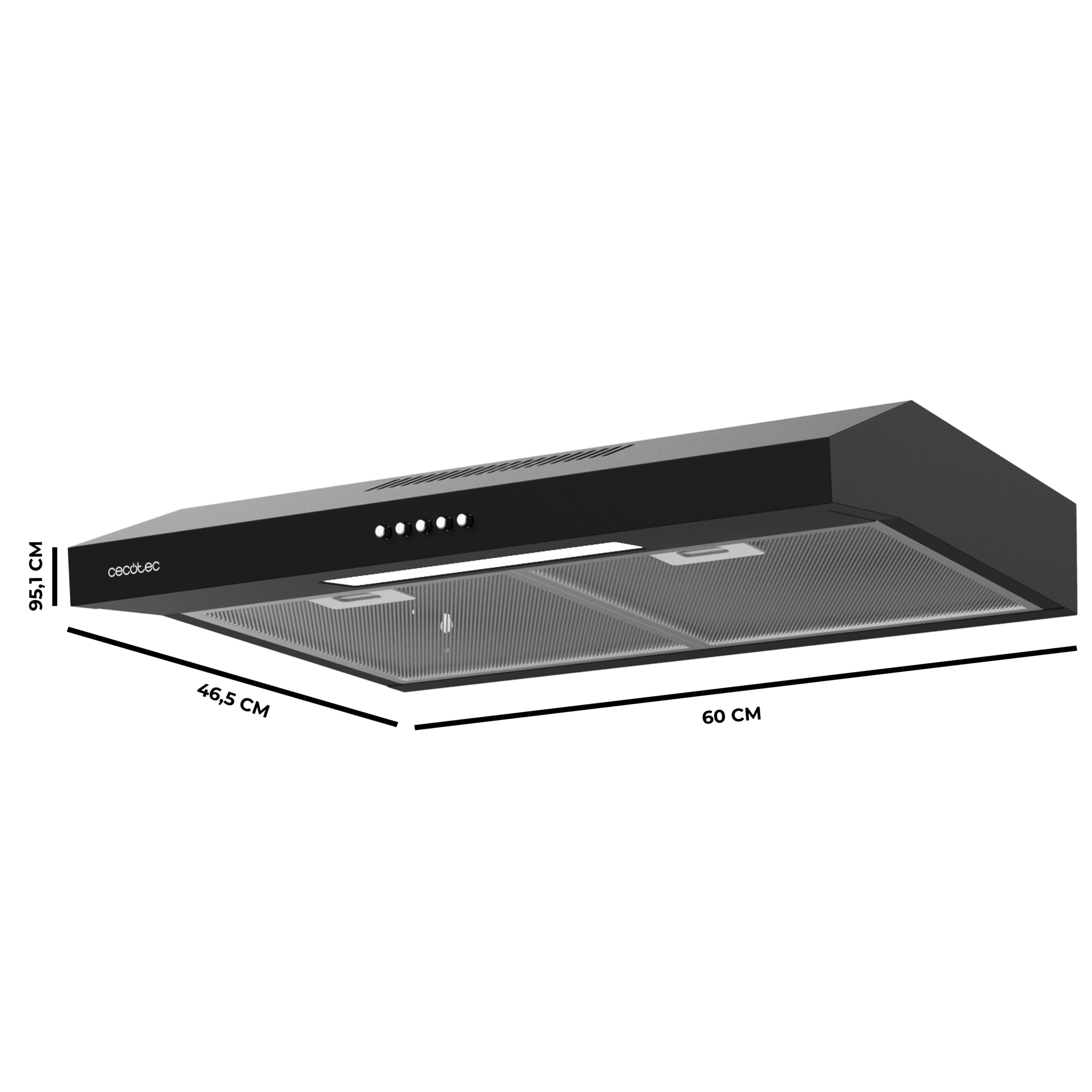 Campana extractora convencional Flux CM 602200 Black B de 60cm de ancho, acabado negro, potencia succión 220m3/h, Motor 70W, Clase B, control mecánico, 3 niveles de potencia y luz.