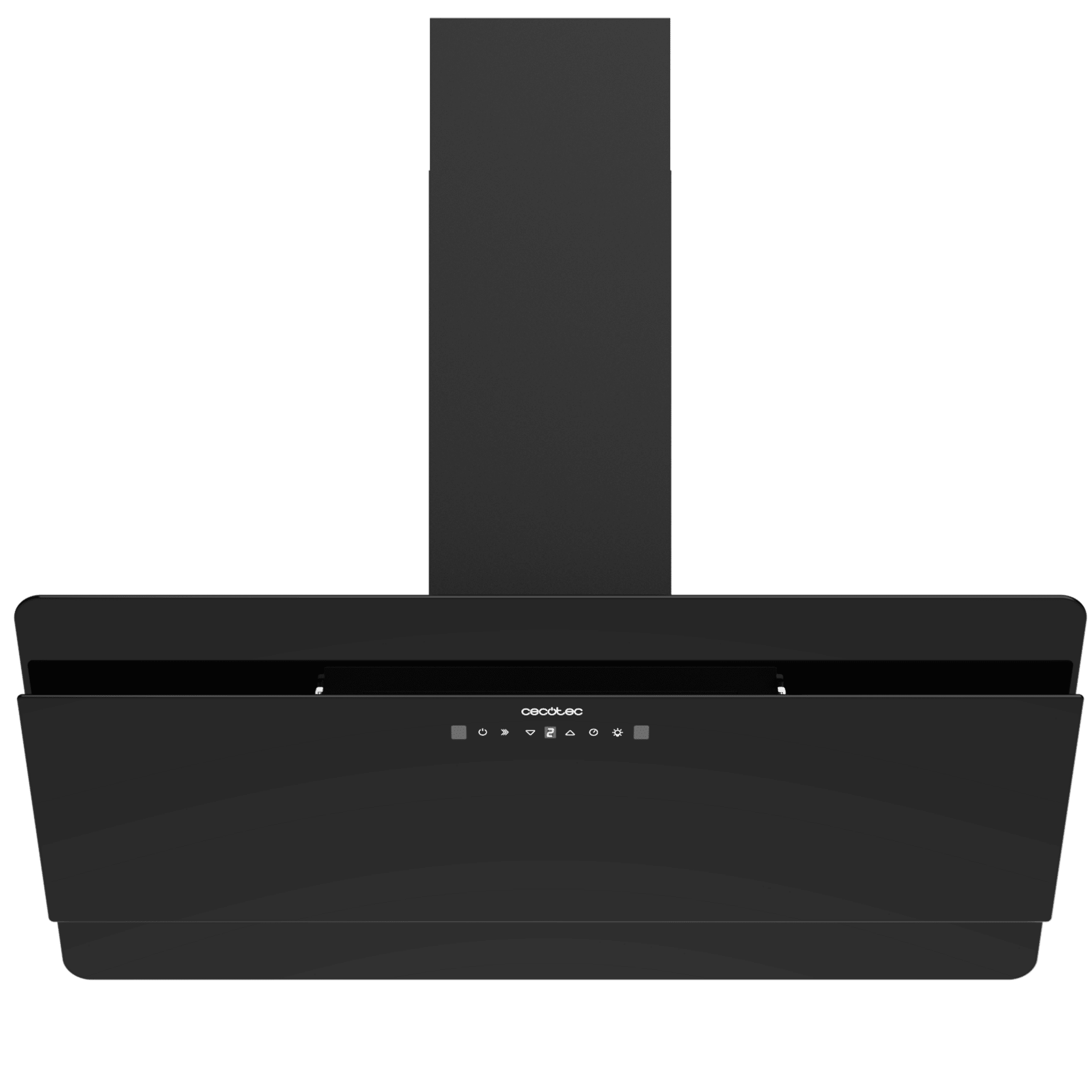 Campana decorativa Bolero Flux DT 908000 Glass Black A++ de 90cm de ancho, acabado frontal vidrio negro, chimenea negra, succión 800m3/h, Motor 220W, Clase A++, control táctil, 3 niveles de potencia, Booster, luz, filtro de carbono y Hand Movement Control.