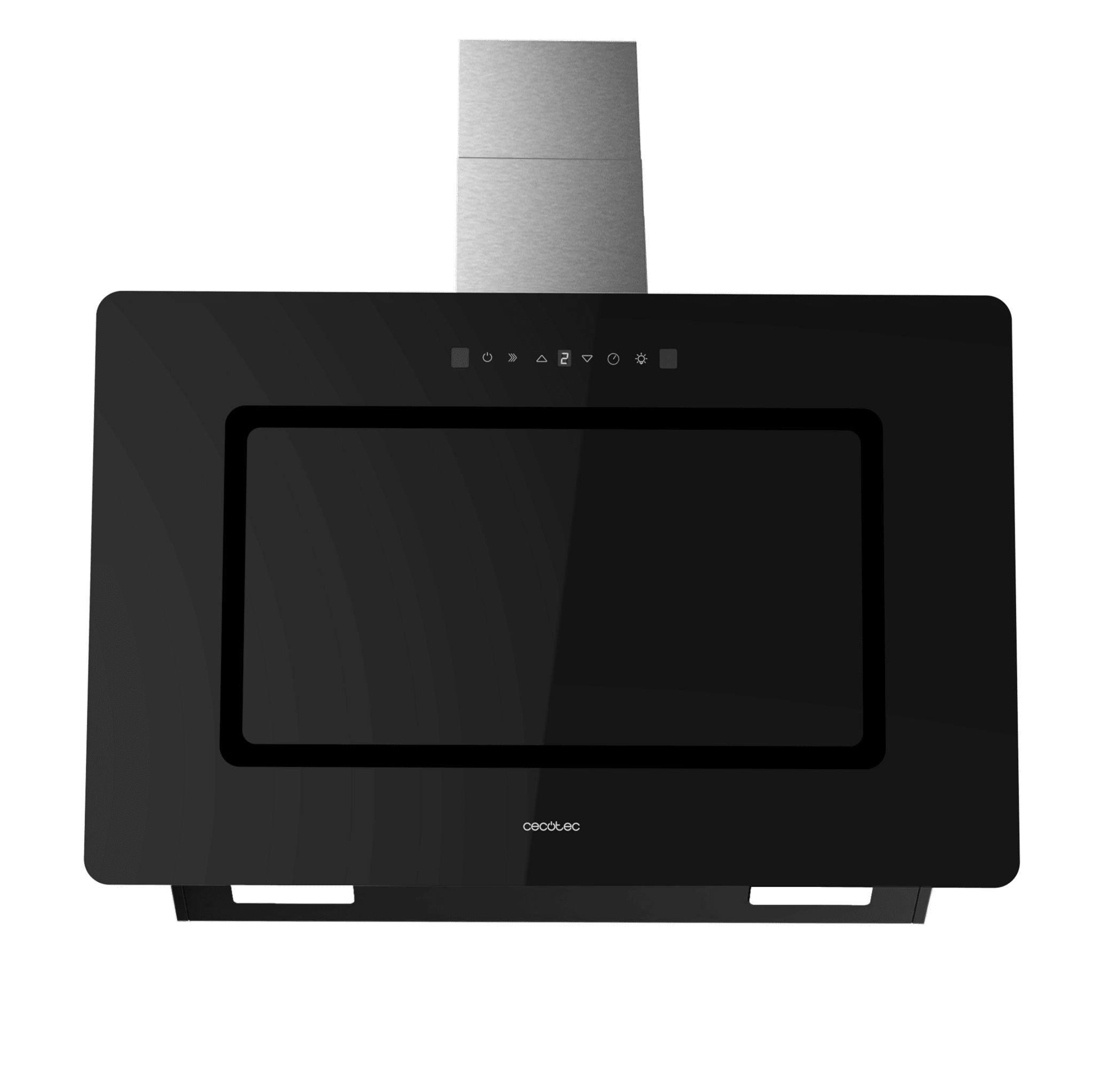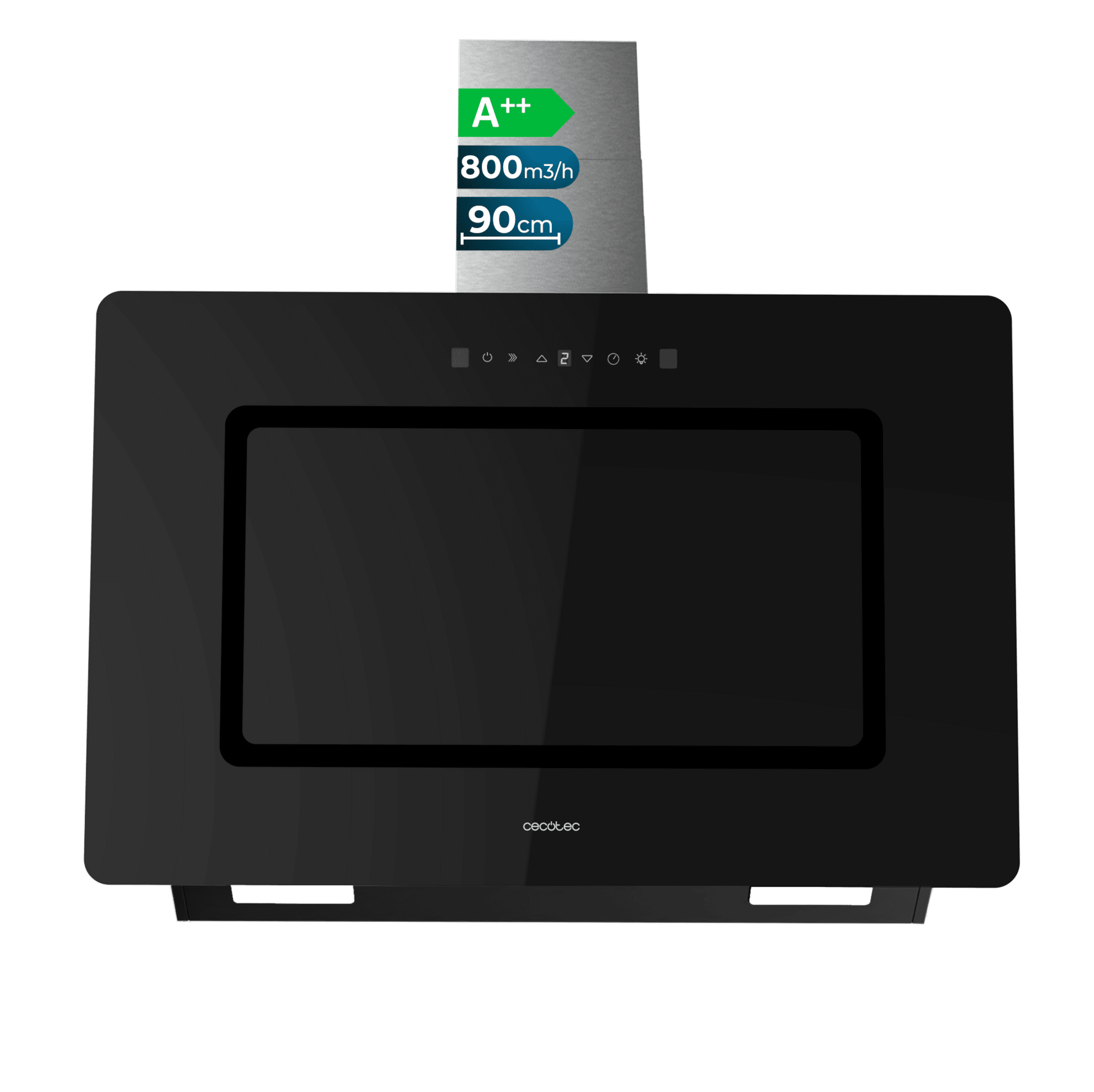 Campana decorativa Bolero Flux DT 908002 Glass Black A++ de 90cm de ancho, acabado frontal vidrio negro, chimenea inox, succión 800m3/h, Motor 220W, Clase A++, control táctil, 3 niveles de potencia, Booster, luz, filtro de carbono, Hand Movement Control y Smoke Sensor.