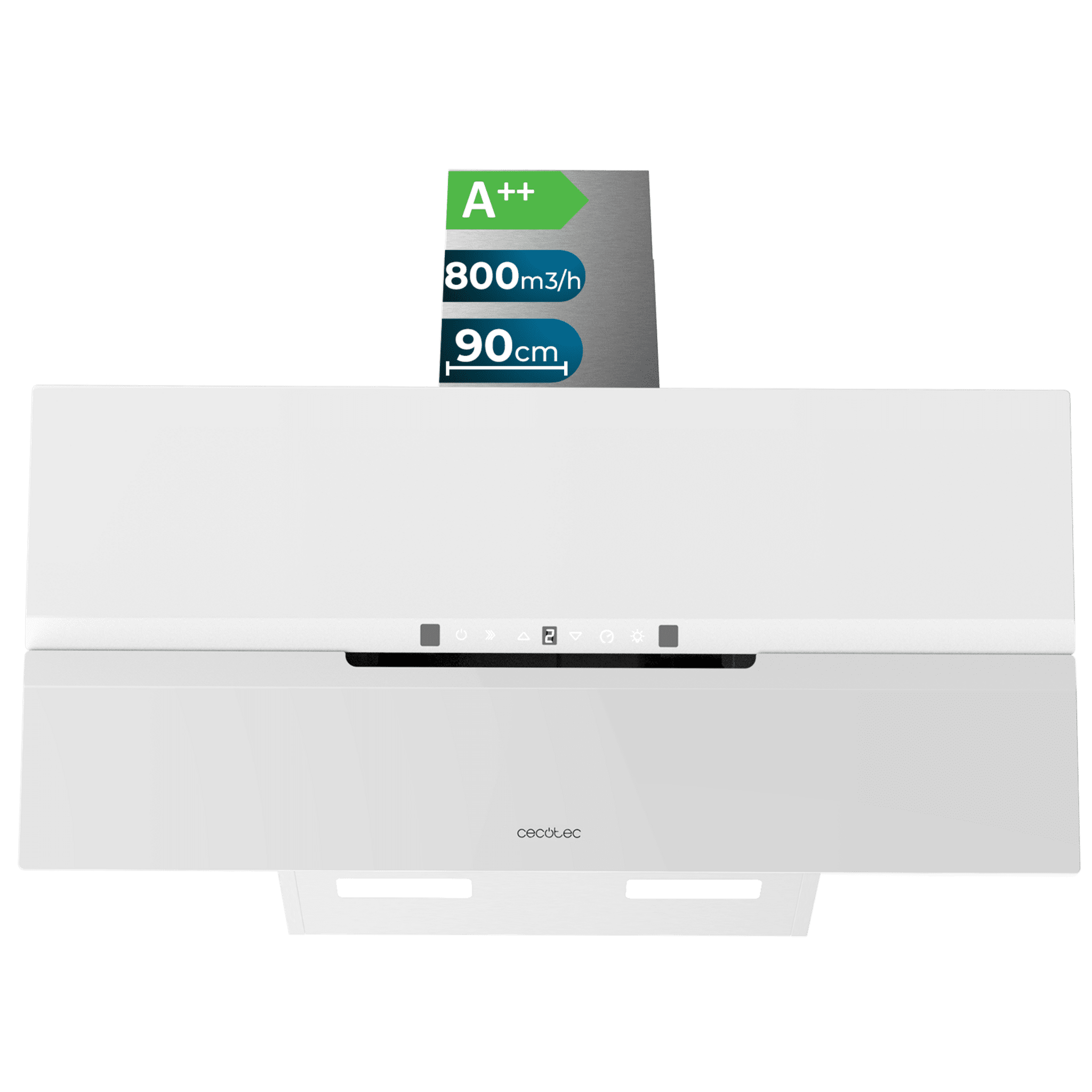 Campana decorativa Bolero Flux DT 908010 Glass White A++ de 90cm de ancho, acabado frontal vidrio blanco mate, chimenea inox, succión 800m3/h, Motor 220W, Clase A++, control táctil, 3 niveles de potencia, Booster, luz, filtro de carbono, Apertura automática, Hand Movement Control y Smoke Sensor.