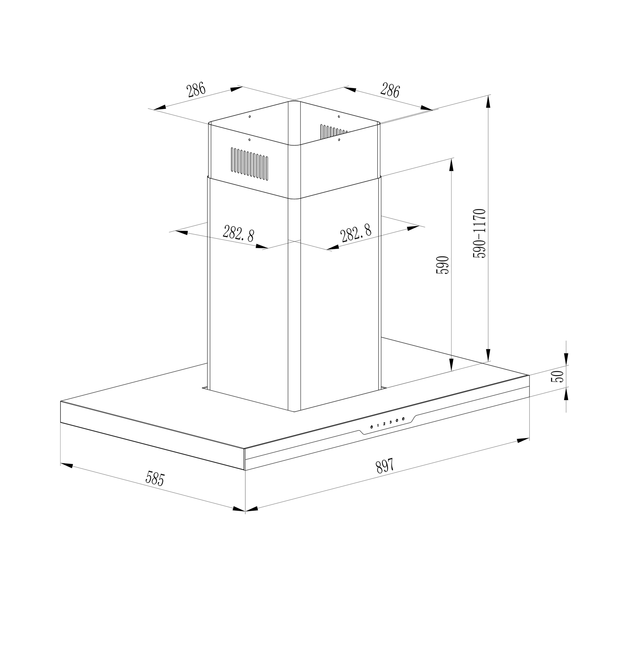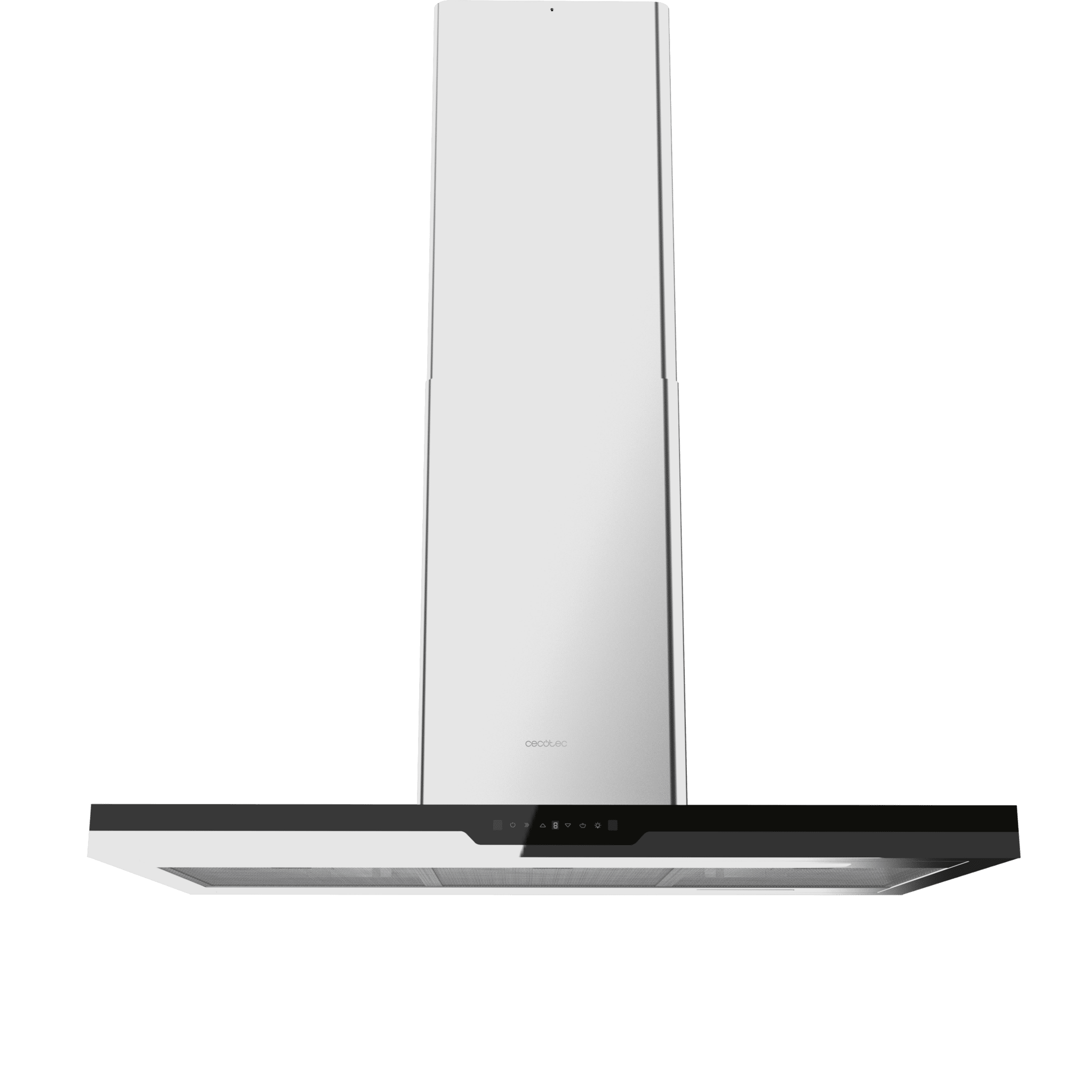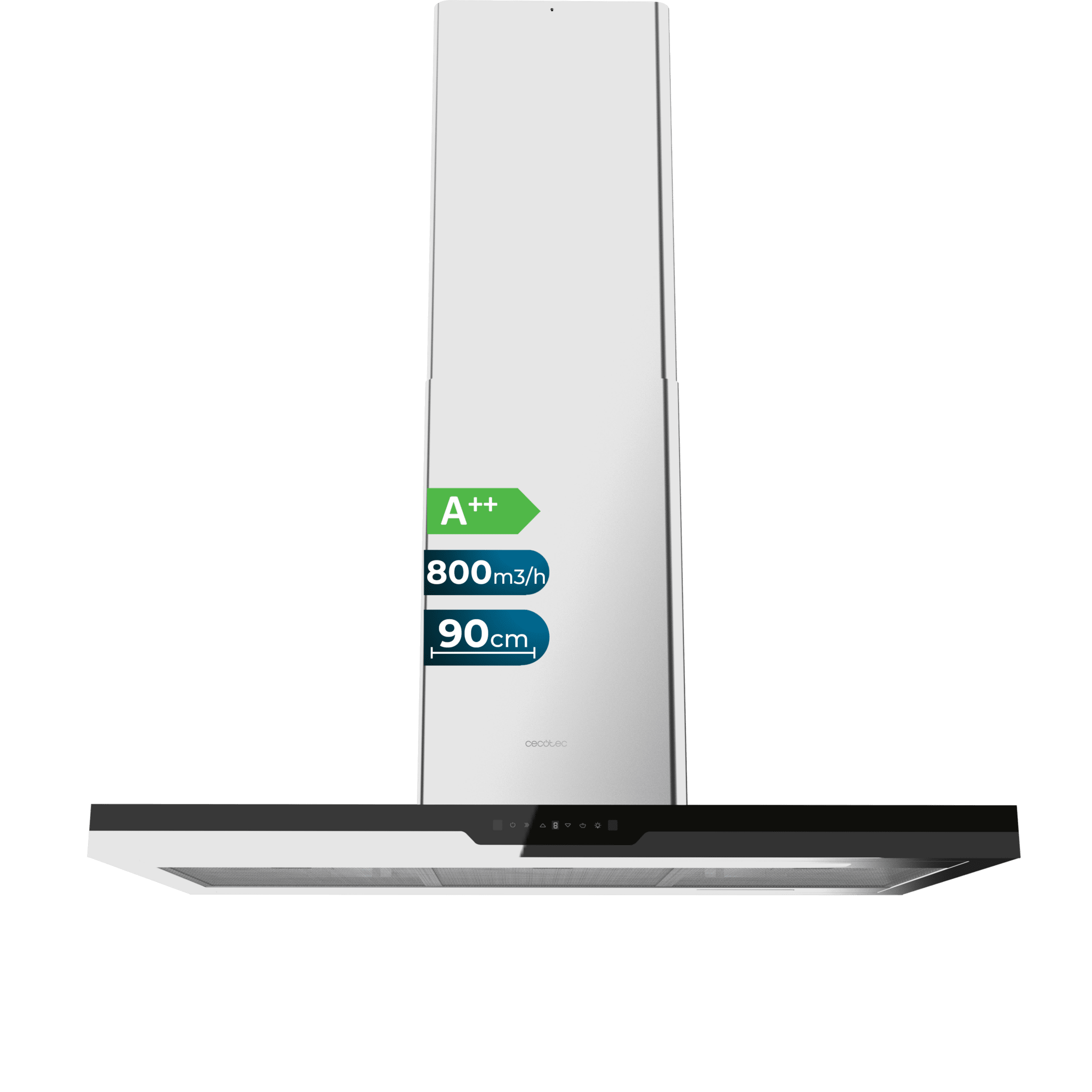 Campana isla Bolero Flux ICT 908000 Glass Black A++ de 90cm de ancho, acabado frontal vidrio negro, chimenea inox, succión 800m3/h, Motor 220W, Clase A++, control táctil, 3 niveles de potencia, luz, filtro de carbono, Hand Movement Control y Smoke sensor.