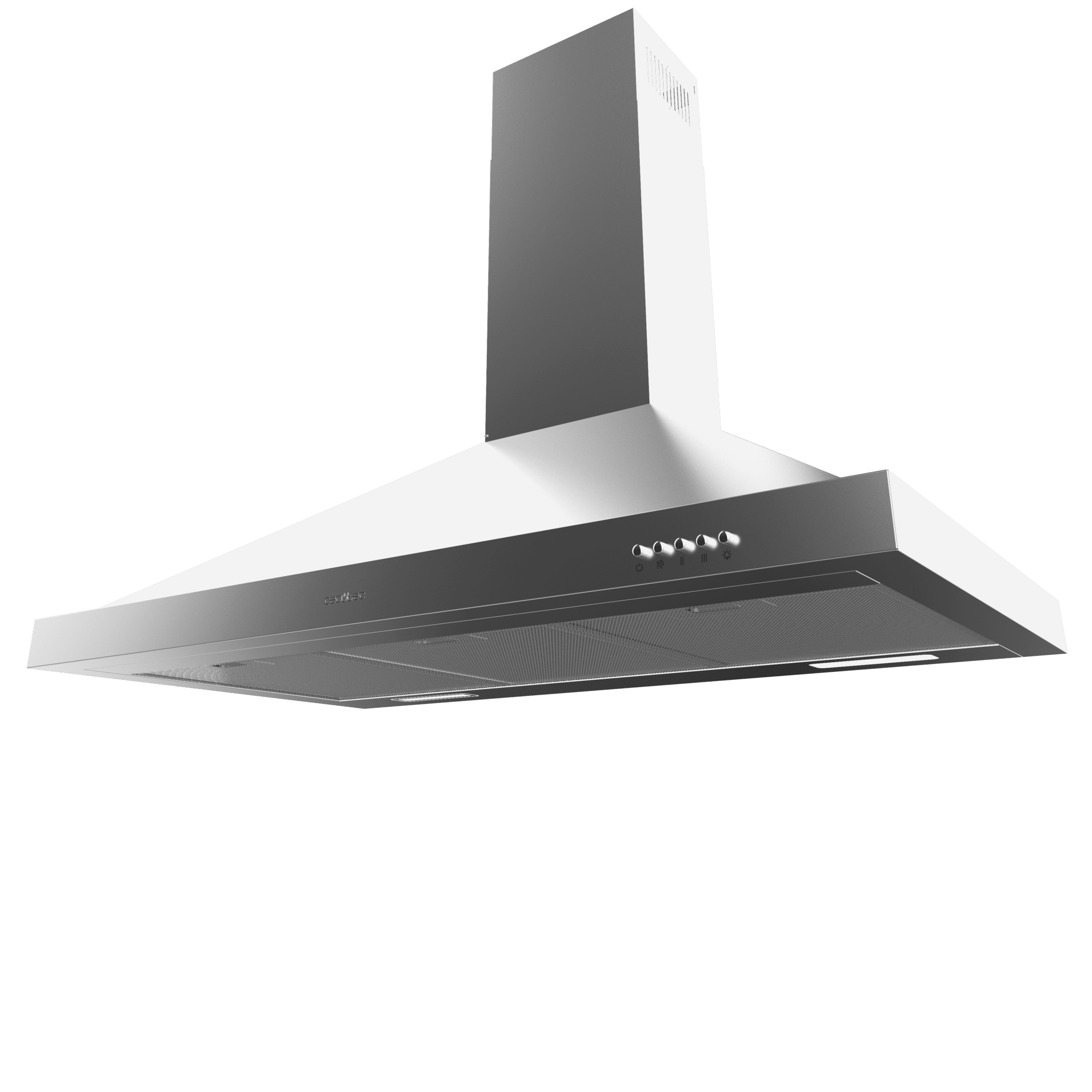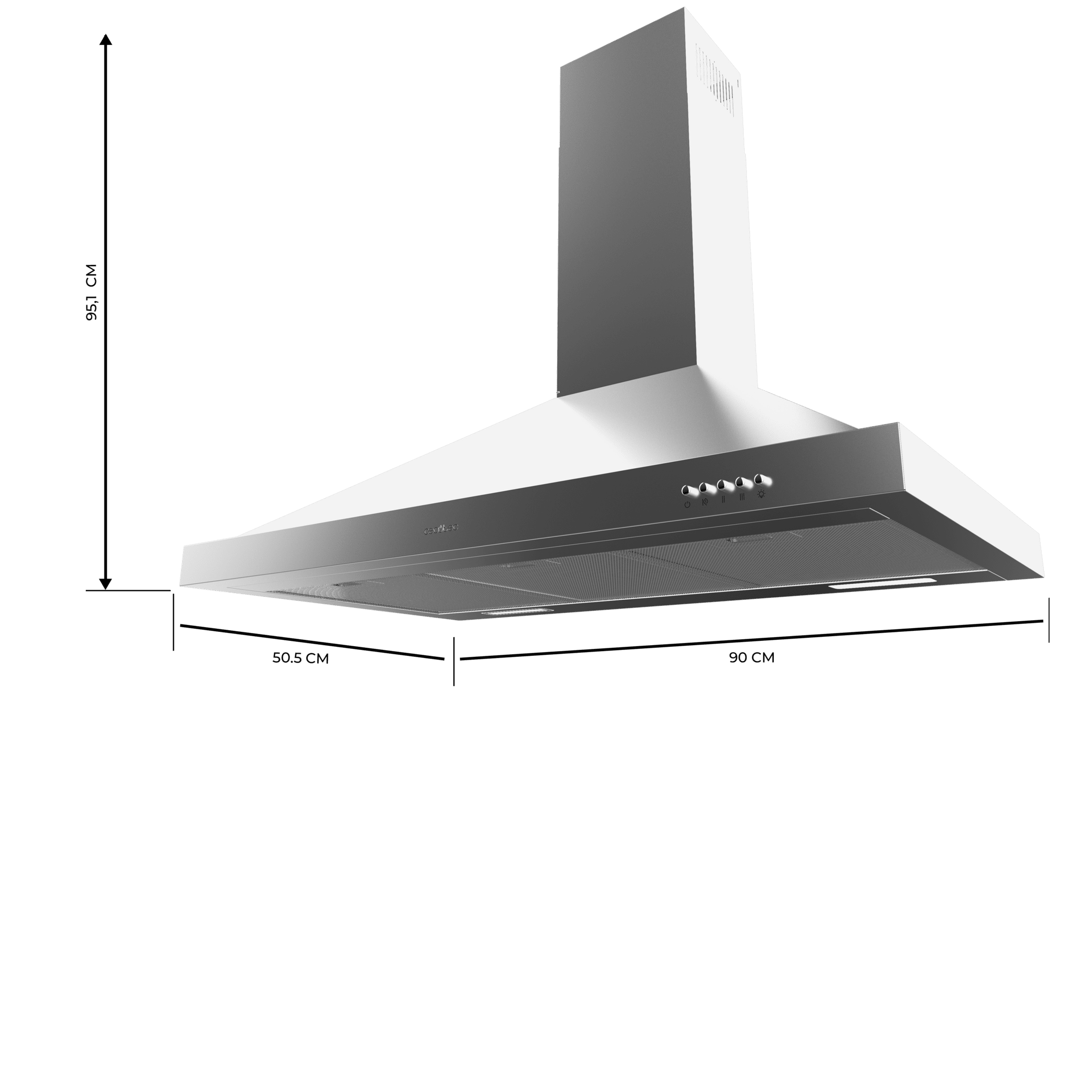 Campana piramidal Bolero Flux PM 906500 Inox A de 90cm de ancho, acabado inox, succión 650m3/h, Motor 165W, Clase A, control mecánico, 3 niveles de potencia, luz y filtro de carbono.