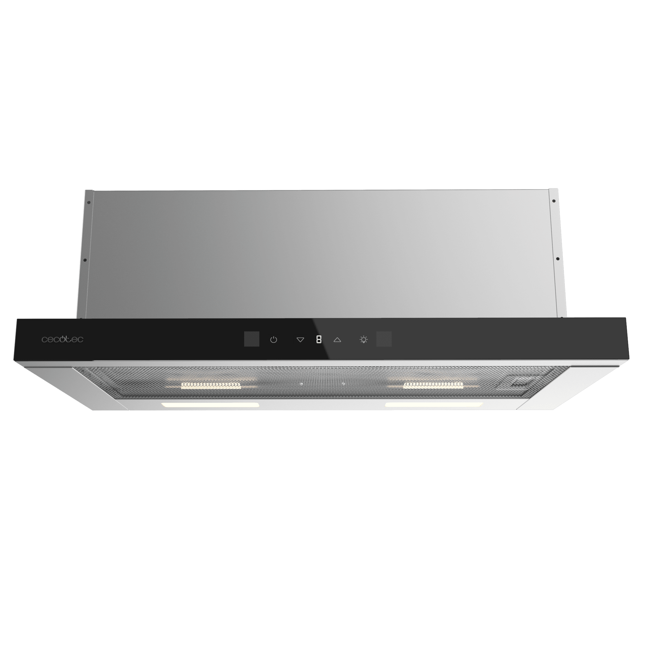 Cecotec Bolero Flux TLT 604400 Glass Black A+++ Campana Extractora Telescópica de 60cm, Succión 431,2m³/h, Clase A+++, Control Táctil Invisible, Cristal Negro, Cuerpo Acero Inox, Motor DC, Hand Movement Control, Función Booster, Filtros de aluminio, Opción de filtros de carbono incluídos.