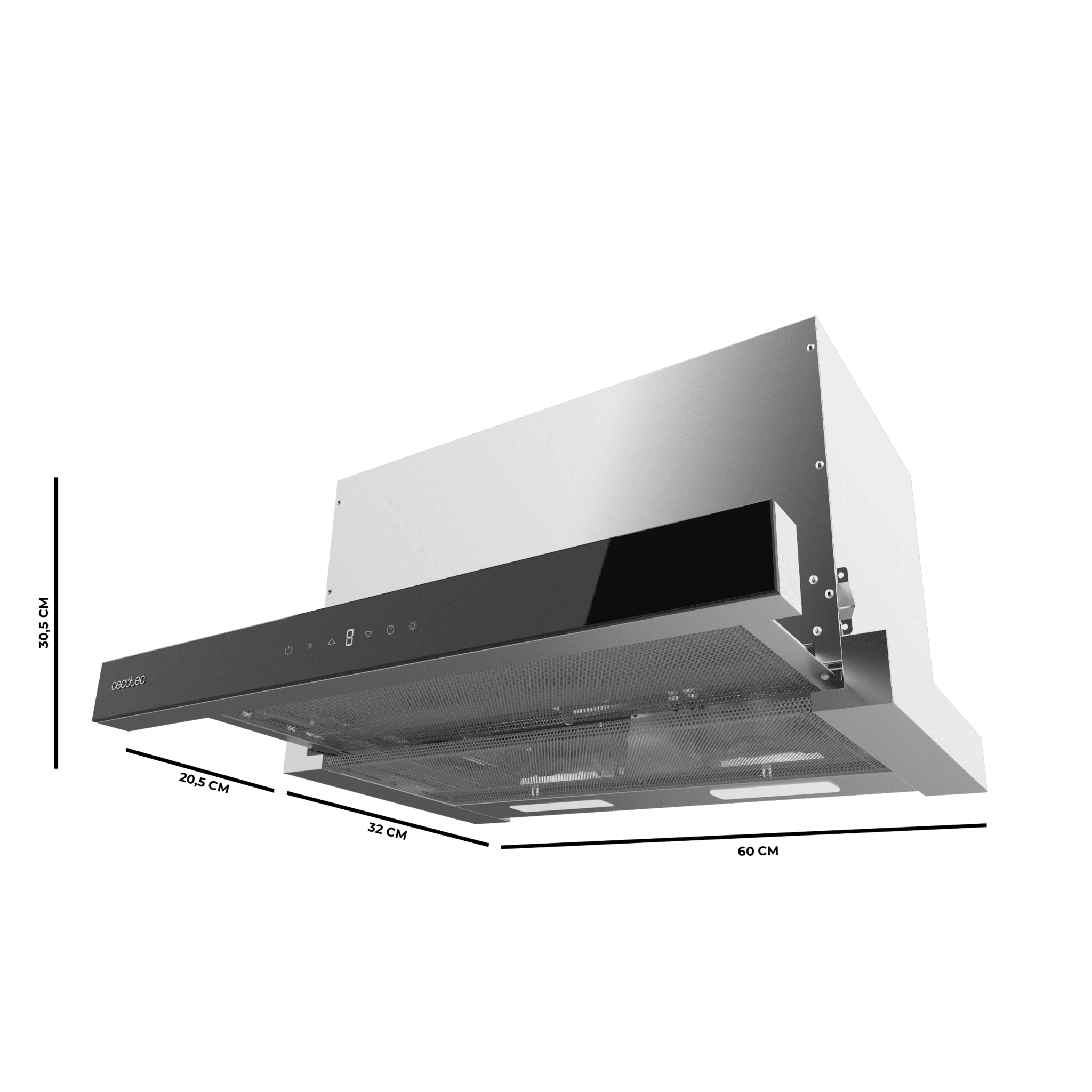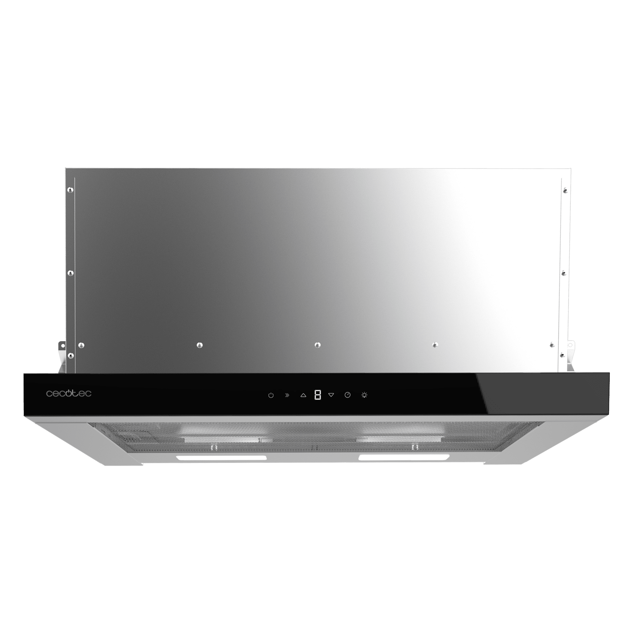 Campana extractora telescópica Flux TLT 605500 Glass Black A++ de 60cm de ancho, acabado frontal vidrio negro, potencia succión 550m3/h, Motor 75W, Clase A++, control táctil, con filtro de carbono y Hand Movement Control