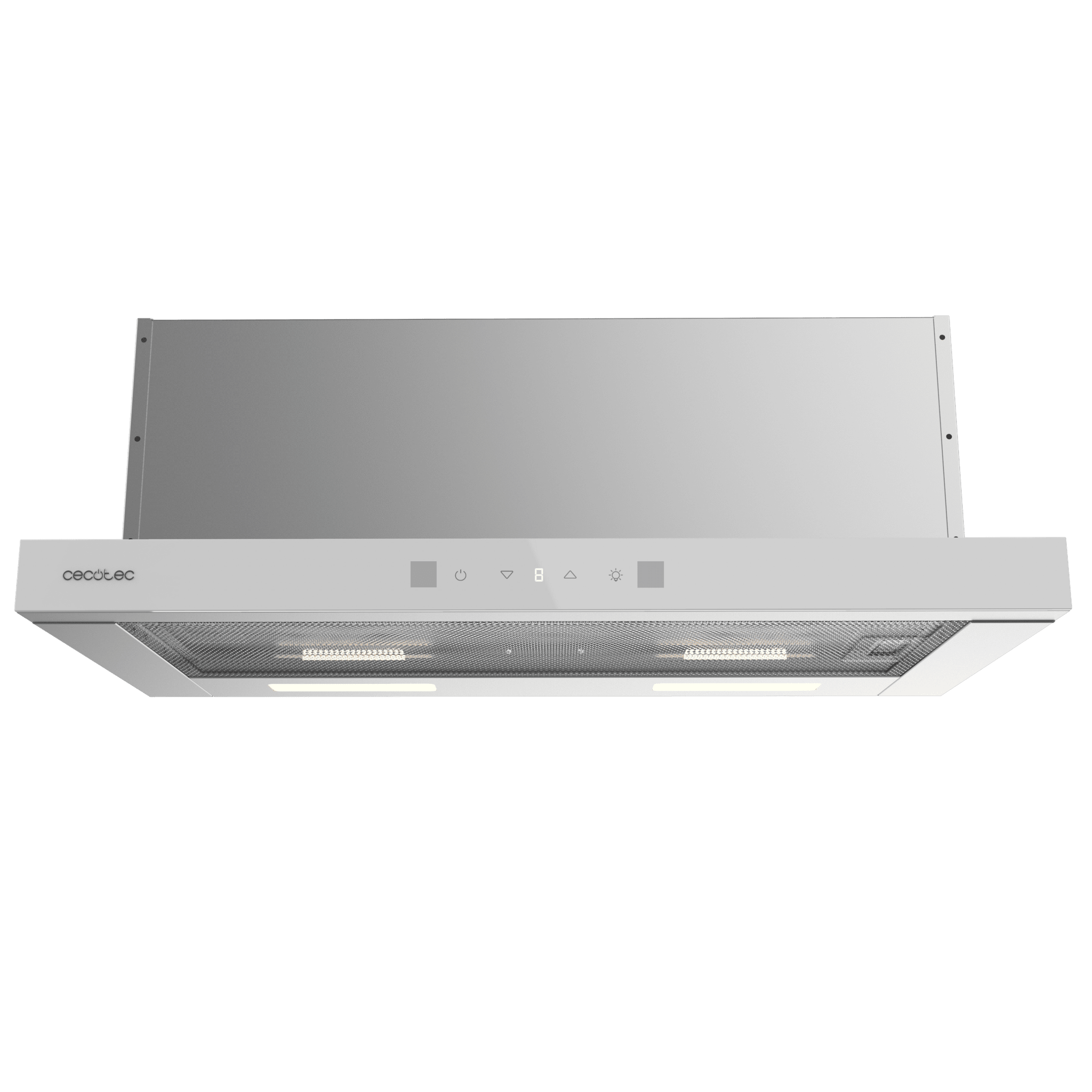 Cecotec Bolero Flux TLT 704400 Glass White A+++ Campana Extractora Telescópica de 70cm, Succión 431,2m³/h, Clase A+++, Control Táctil Invisible, Cristal Blanco, Cuerpo Acero Inox, Motor DC, Hand Movement Control, Función Booster, Filtros de aluminio, Opción de filtros de carbono incluídos.