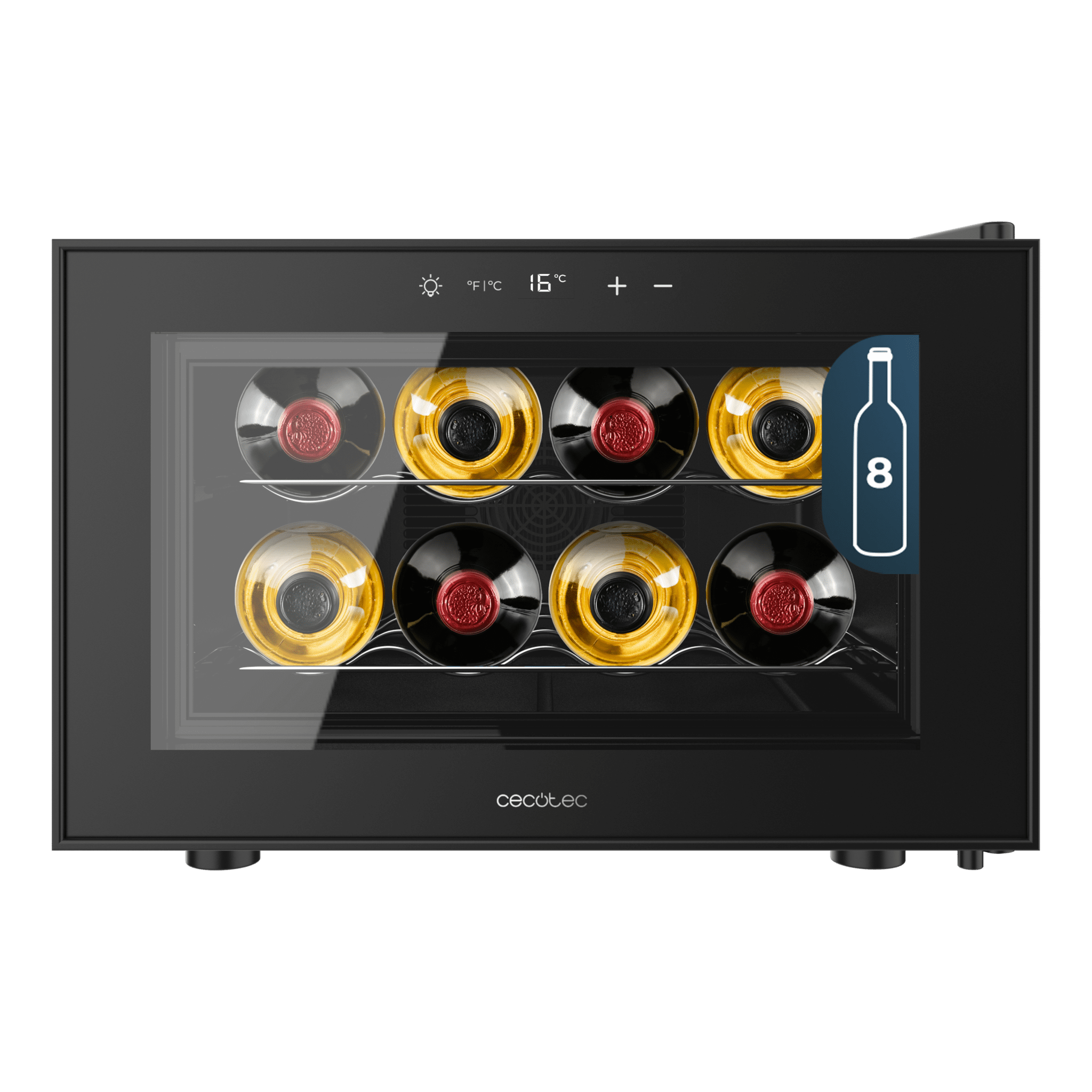 Vinoteca Horizontal Termoeléctrica, Capacidad 8 Botellas, Silenciosa 35dB, Temperatura 8 a 18ºC, Negra