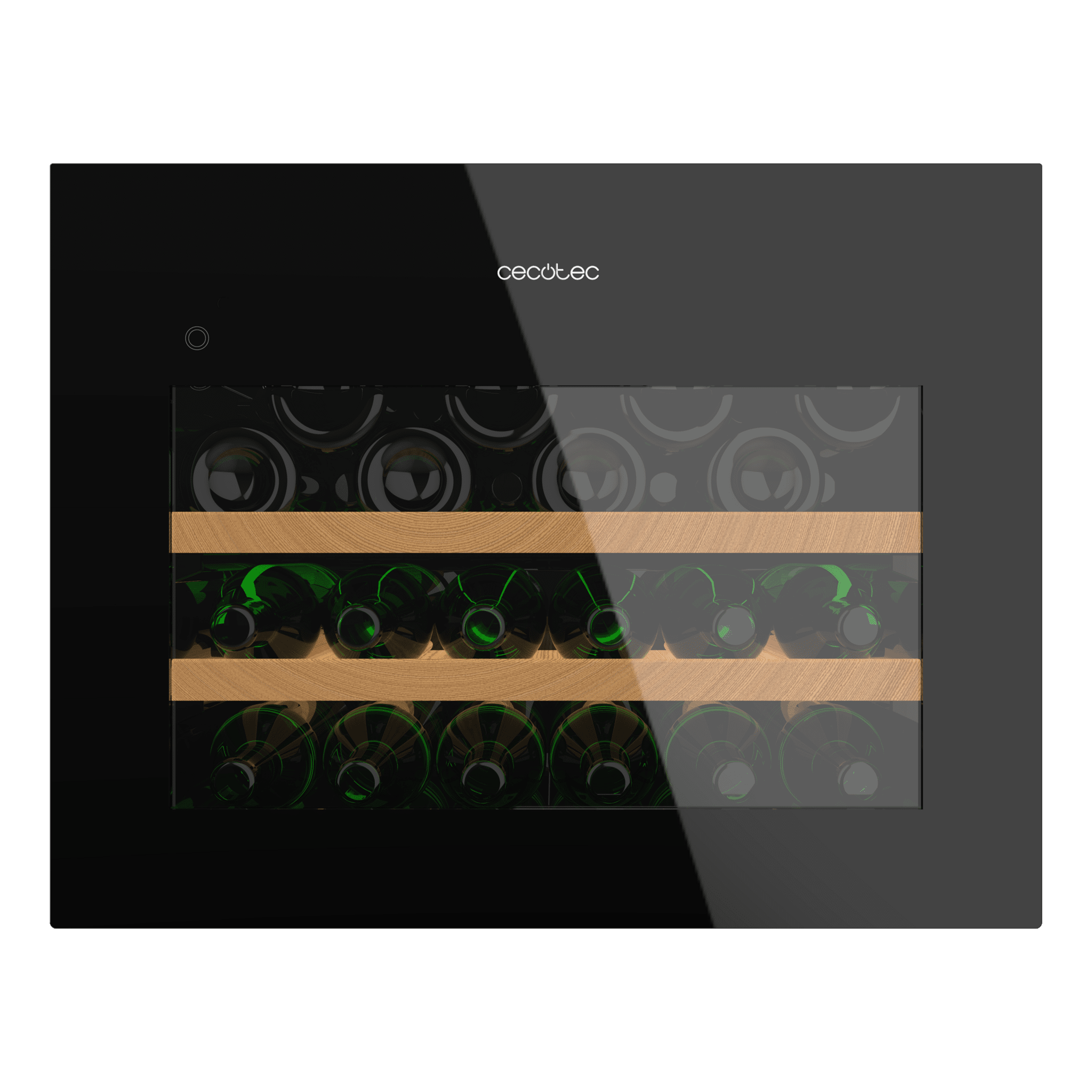 Vinoteca completamente integrable, Cristal Negro, Apertura Sensor Táctil, Temperatura 5ºC a 20ºC, Capacidad 28 Botellas, 45x60cm, LED interior, Compresor integrado, Display LED, Silenciosa, Estantes madera