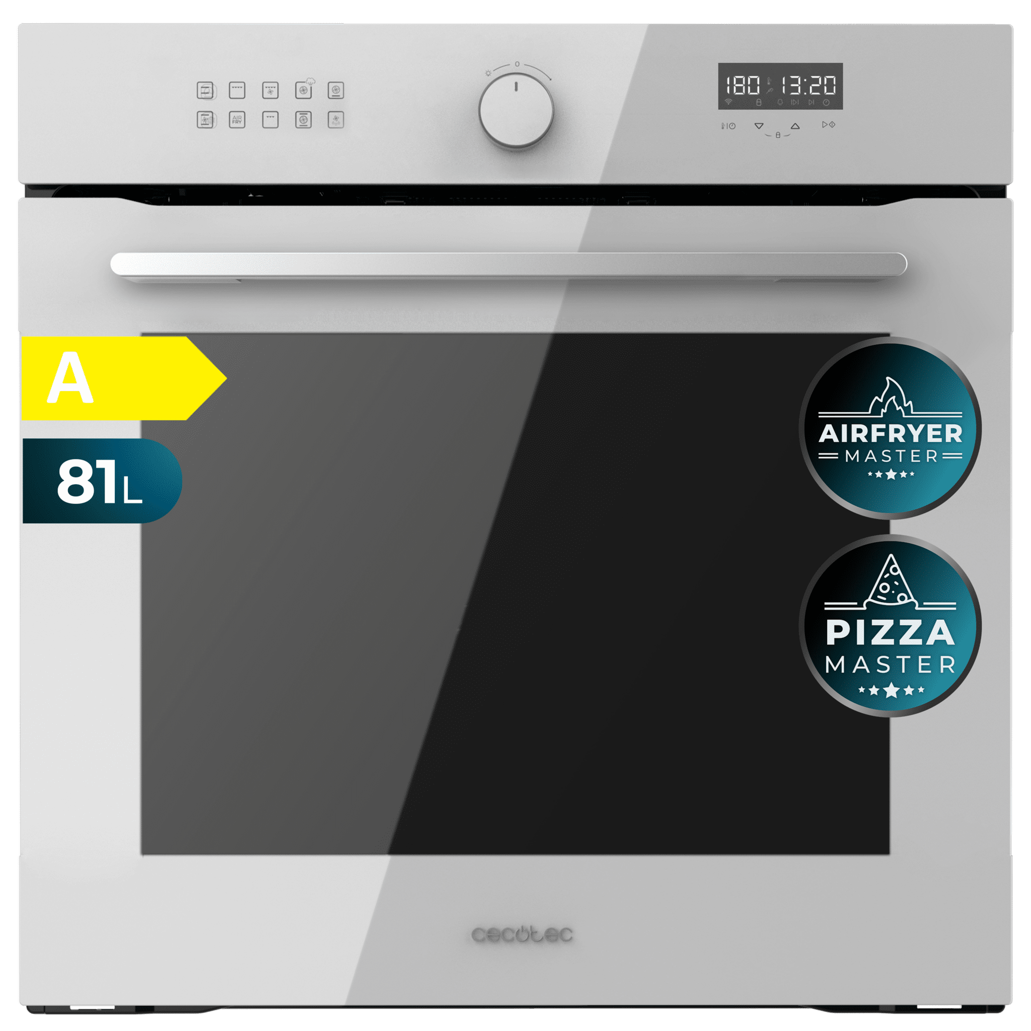 Horno integrable Airfryer Glass White de 81L de capacidad, 11 funciones con Airfryer Master, Pizza Master, Steam Asisst, Steam EasyClean, 3D cooking, Clase A. 59,4 X 54 X 59,4 cm