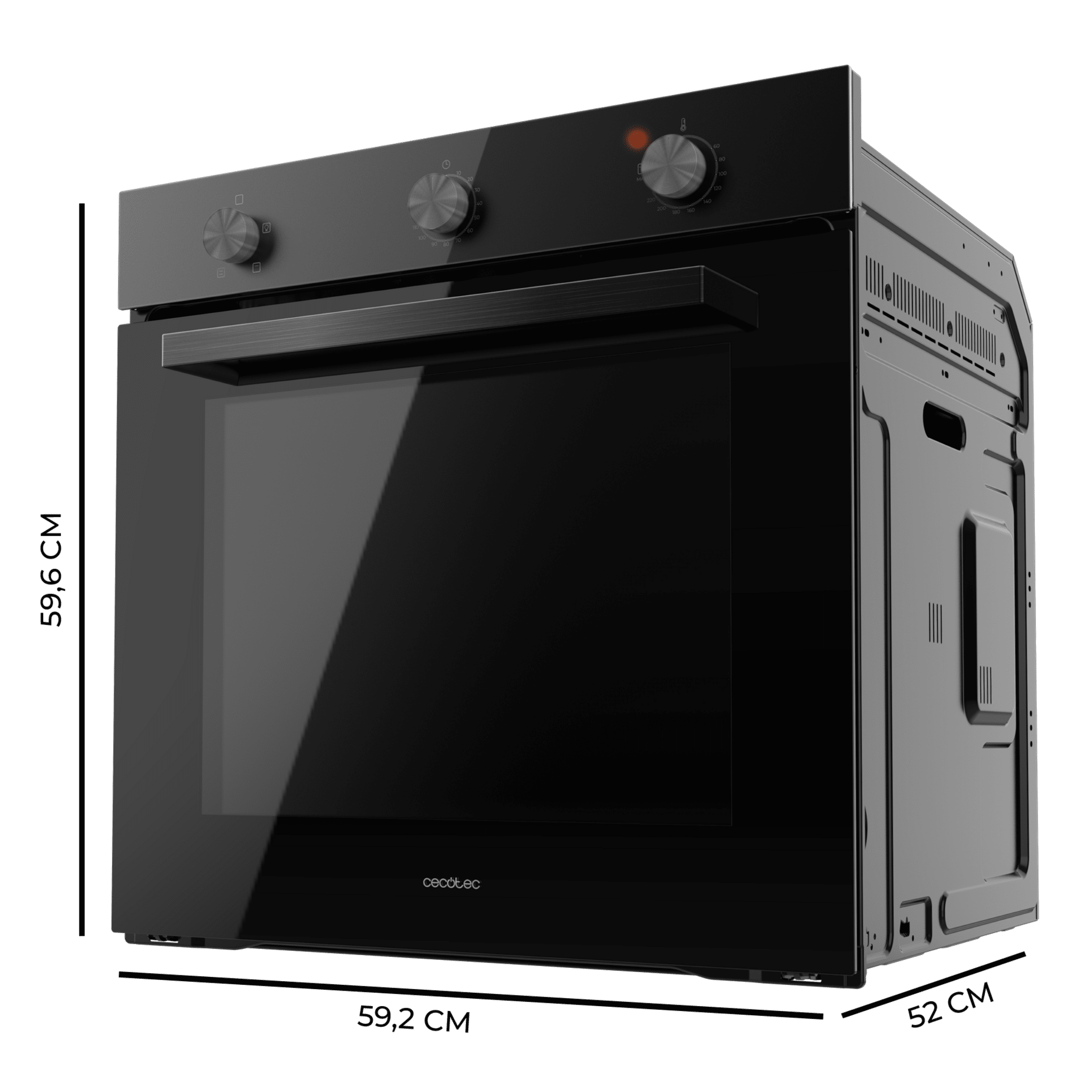 Horno Integrable Bolero Hexa C136000 Glass Black Time A de 77 L de capacidad, 4 funciones, Timer, 2800 W. 59,4 X 51,8 X 59,4 cm