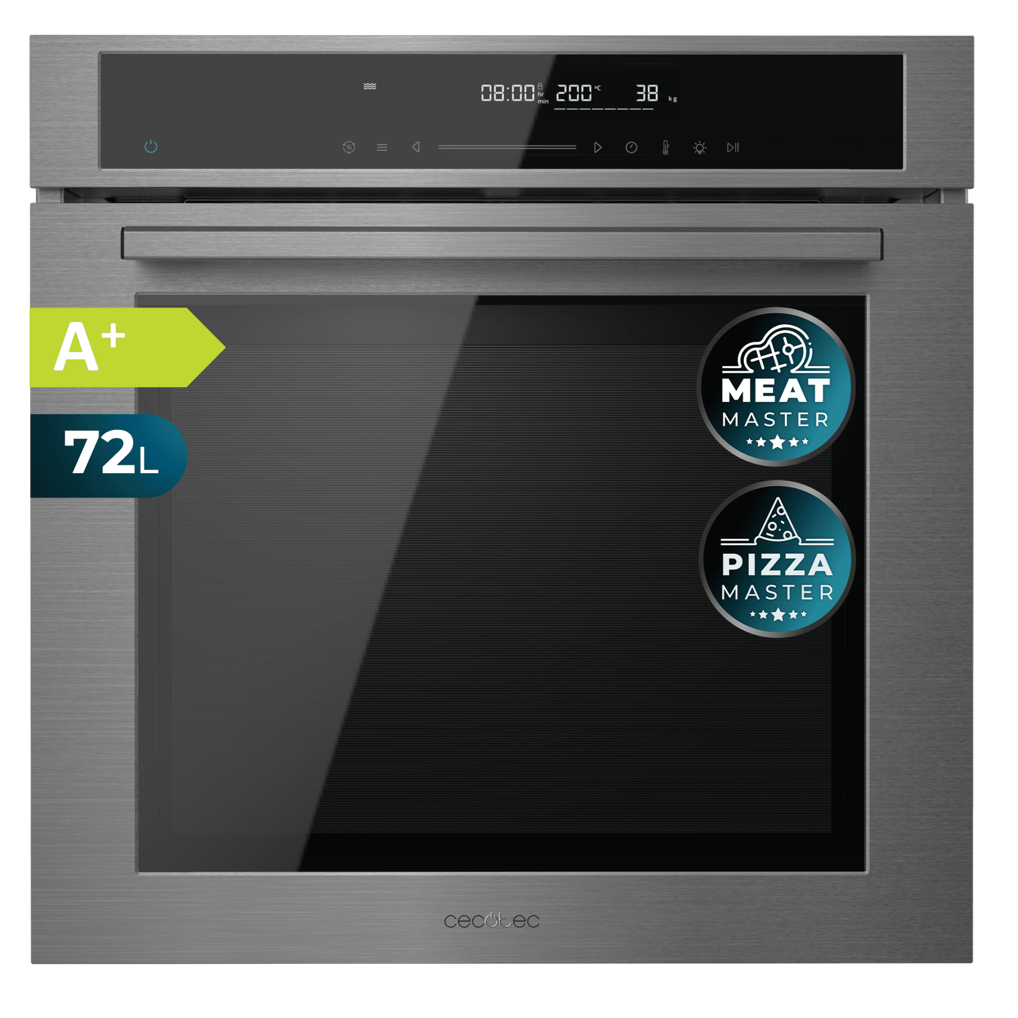 Horno Integrable Multifunción Steak Master de 75 l de capacidad, 13 funciones con Pizza Master, Modo Eco y Defrost, Electronic Timer, 2900 W. 59,4 X 56,6 X 59,4 cm