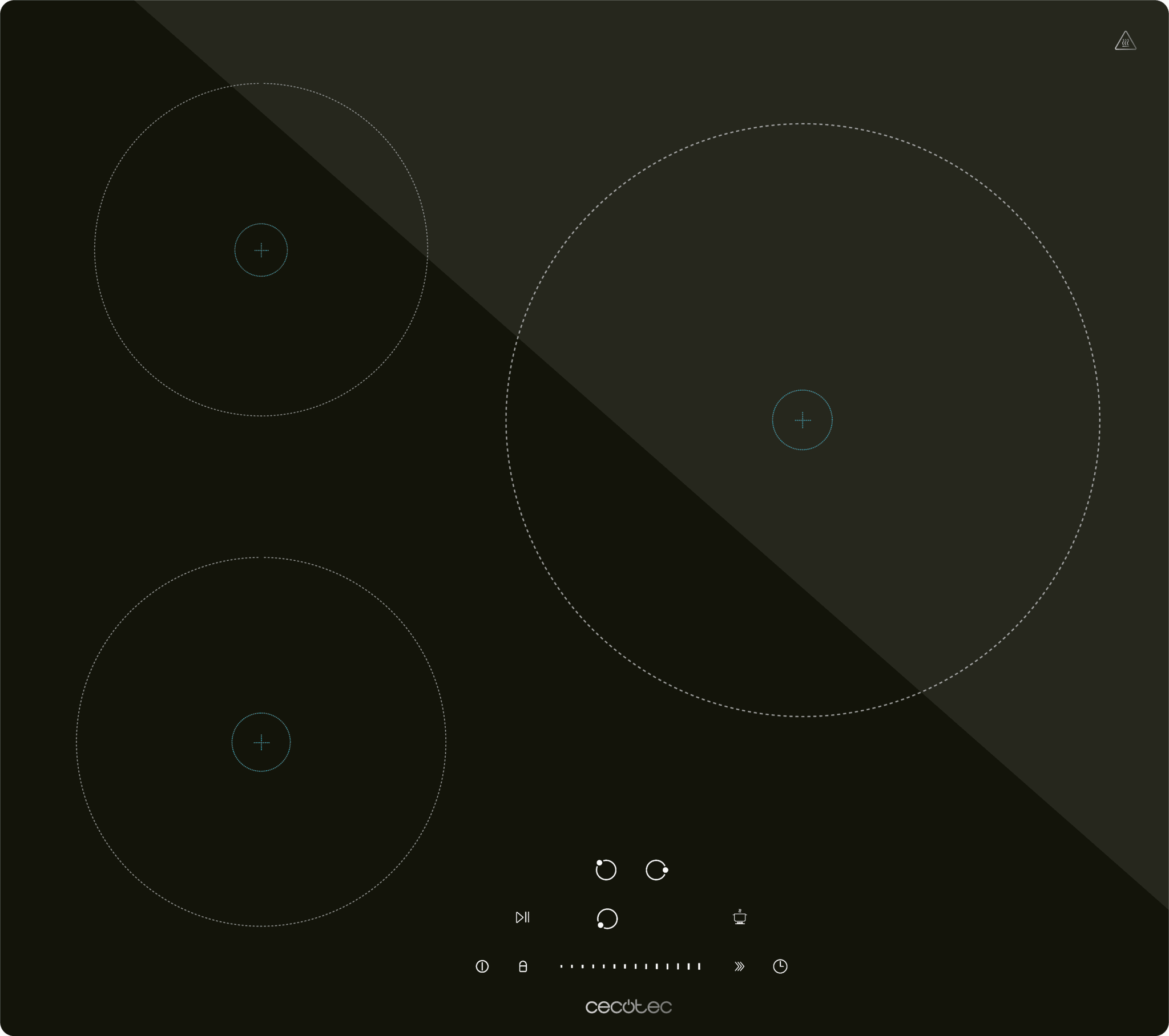 Placa de inducción Bolero Squad I 3200 con 9 niveles de potencia, potenica máxima 7200W, Booster function, invisible touch slider control.