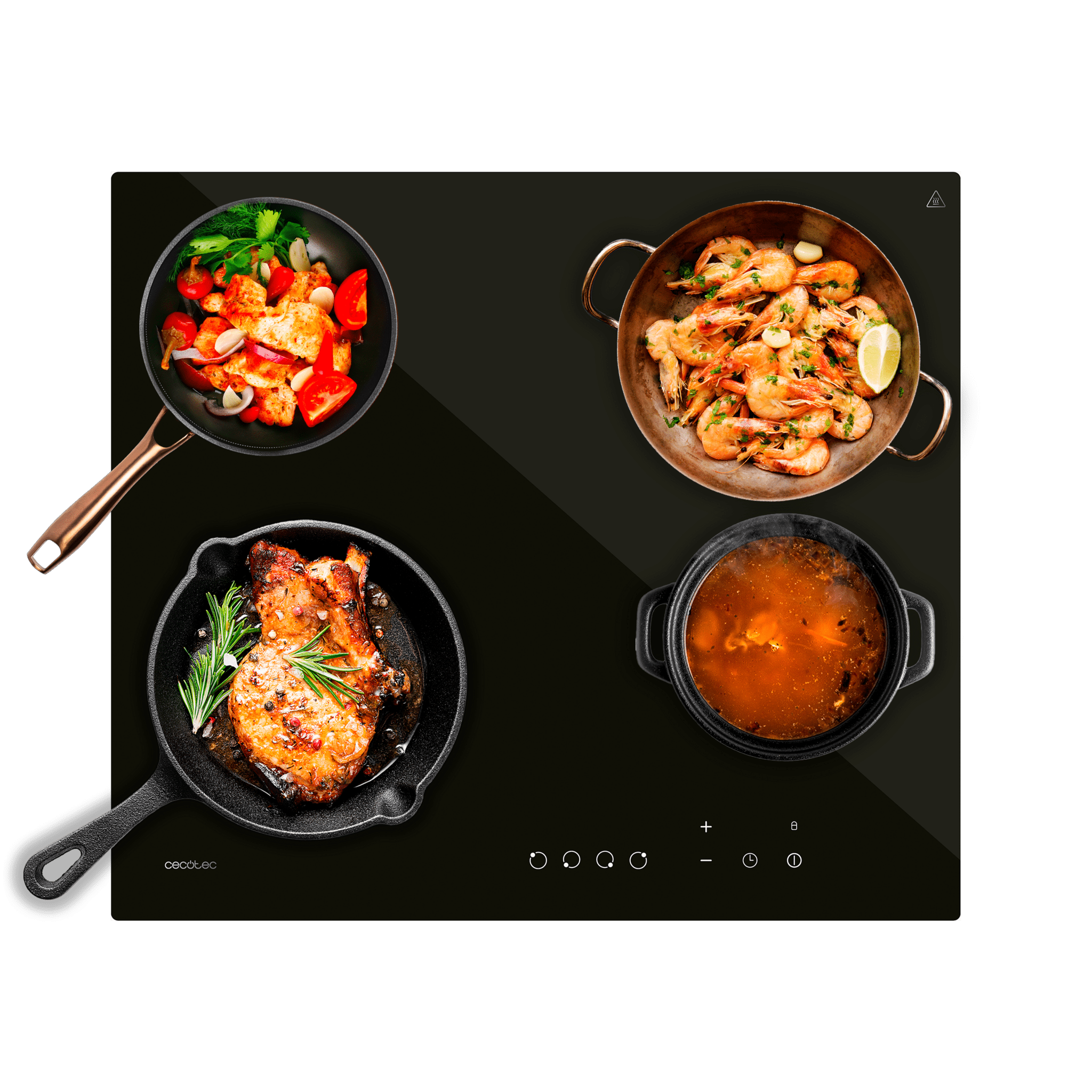 Placas de vitrocerámica de 4 fuegos, 9 niveles, potencia máx. 6000 W y touch control.