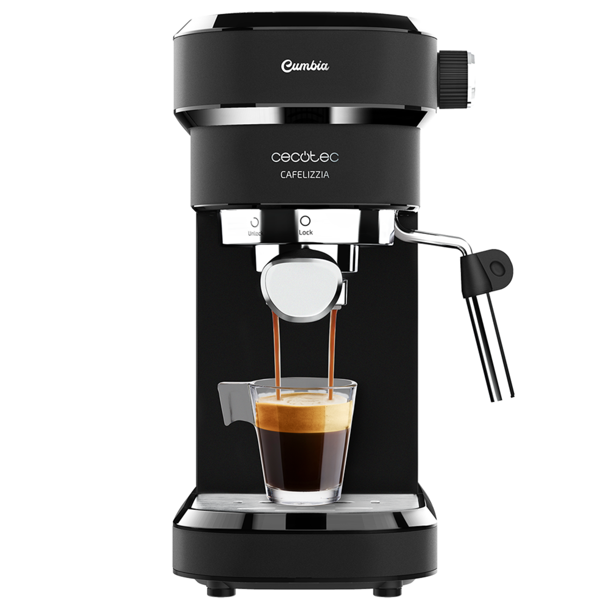 cafetera Espresso Cafelizzia 790 Black para espressos y Cappuccino. Sistema de rápido Calentamiento, 20 Bares, Modo Auto para 1 y 2 cafés, vaporizador orientable,depósito 1,2 litros
