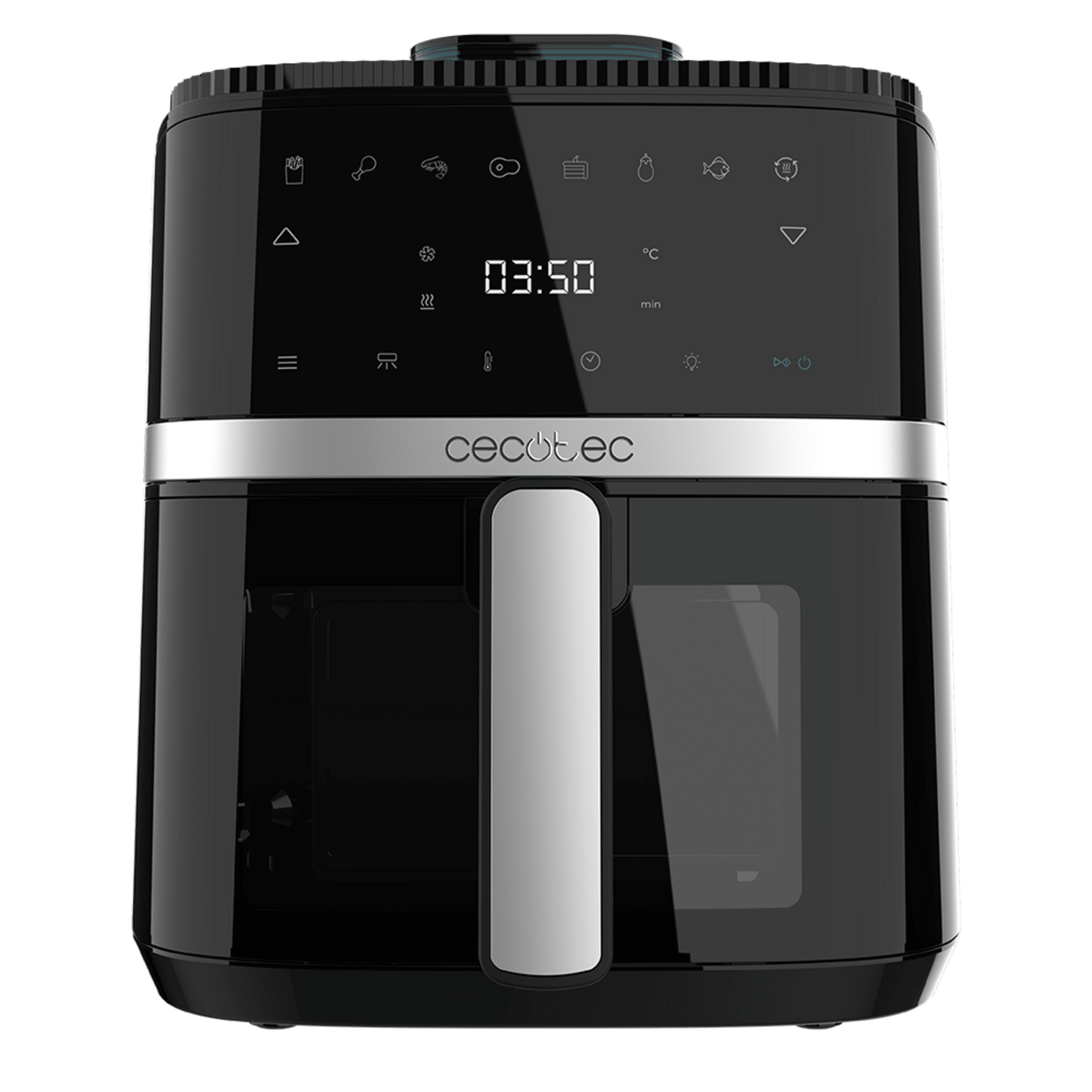 Freidora de aire con spray de agua, 5 litros de capacidad y 1500 W de potencia. Con 8 menús y rango de temperatura de 80ºC a 200ºC.