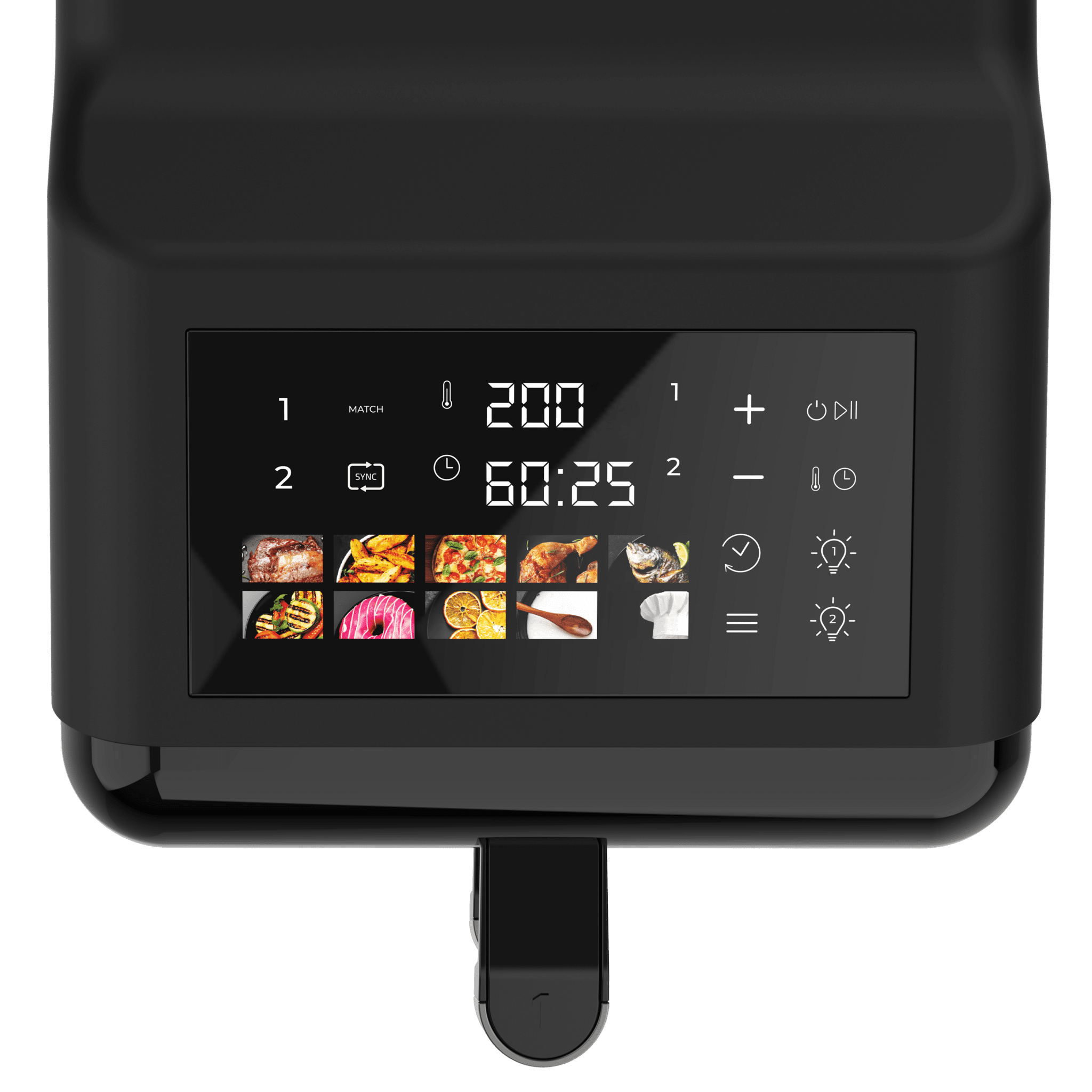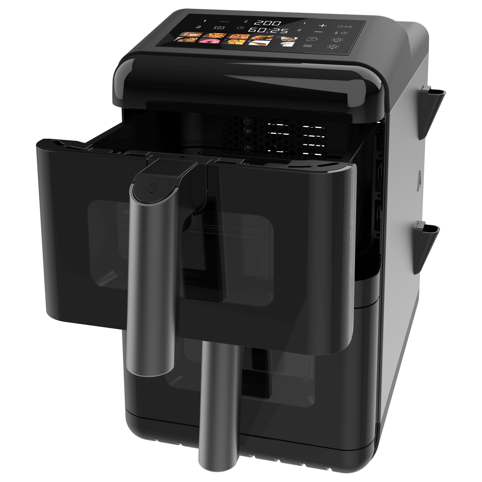 Freidora de aire de 12L con ventanas, con cubetas superpuestas de 6L, 2900 W de potencia, control táctil, y 10 programas preconfigurados para una cocción rápida y saludable.