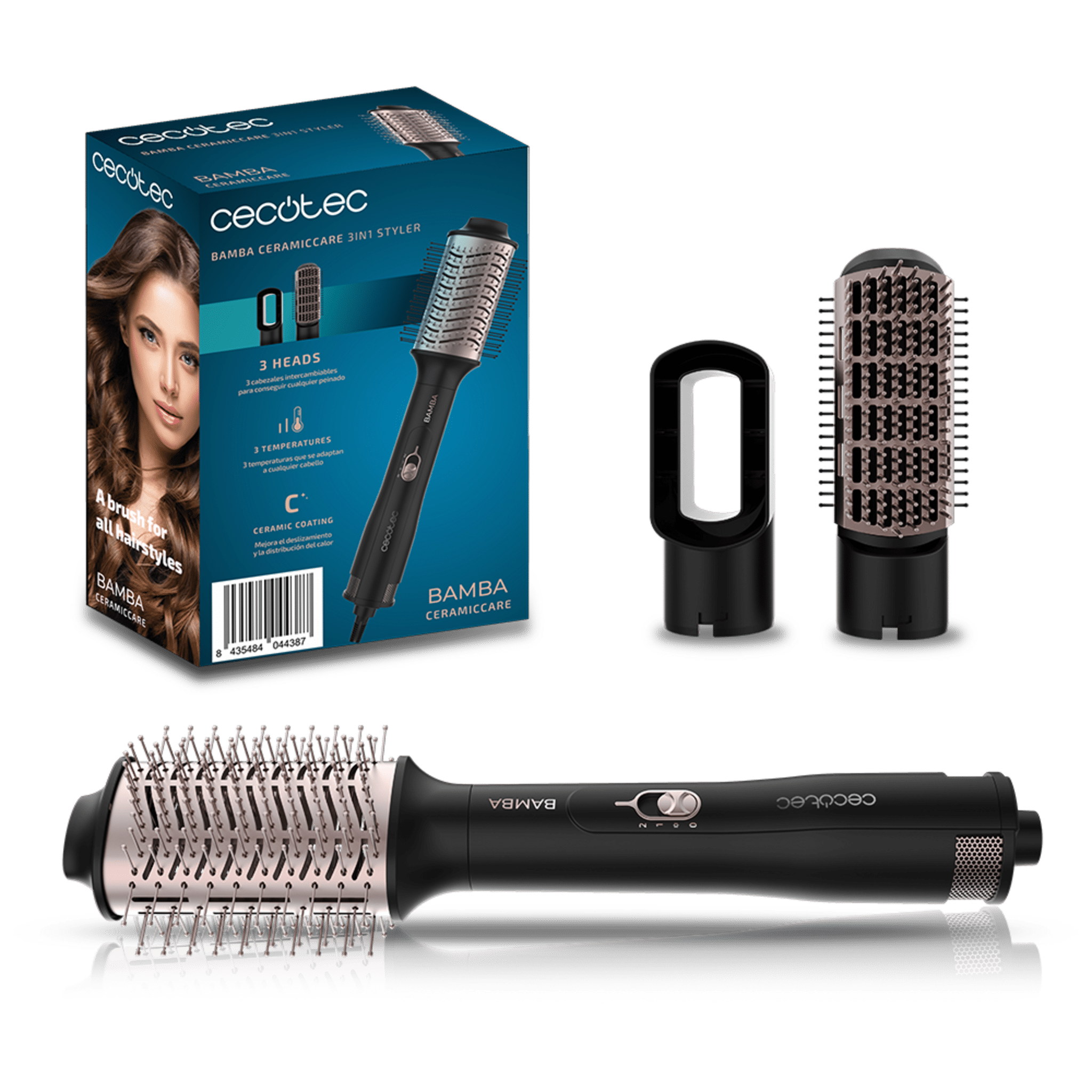 CeramicCare 3in1 Styler Cepillo de aire 3 en 1, con 3 cabezales intercambiables, 3 temperaturas y 2 velocidades.