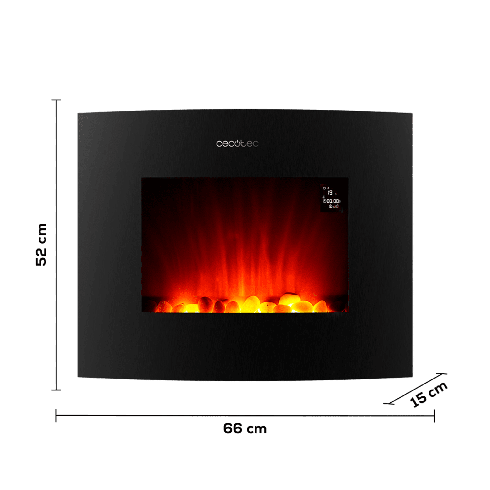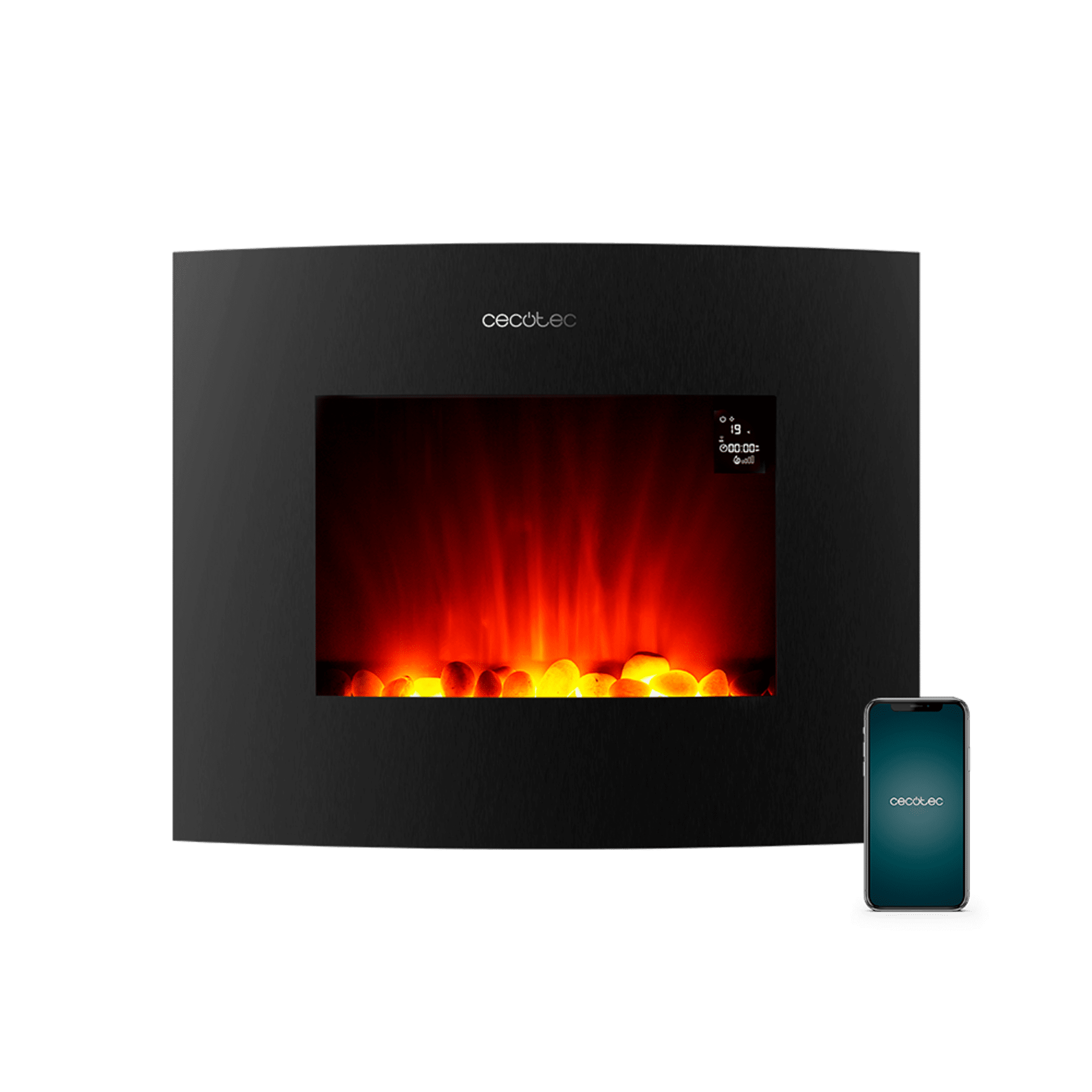 Chimenea Eléctrica Ready Warm 2650 Curved Flames Connected. 2000 W, Tamaño 26″, WiFi, 2 Niveles de Potencia, Mando a Distancia, Panel Curvo, Temporizador, 25 m2