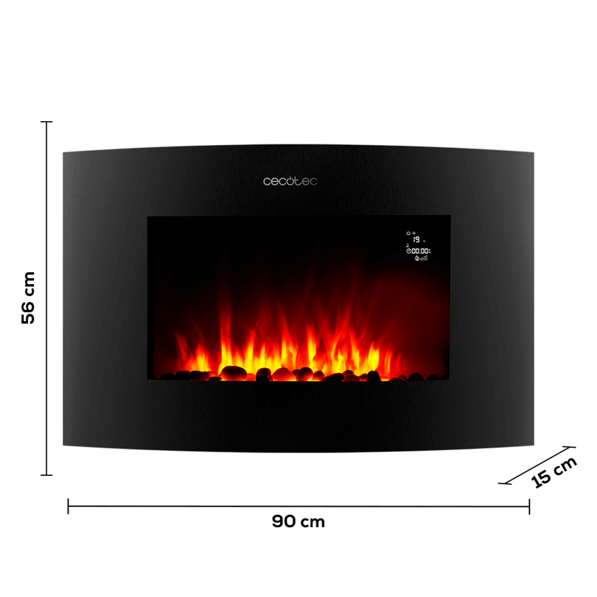 Chimenea Eléctrica Ready Warm 3550 Curved Flames Connected. 2000 W, Tamaño 35″, Wifi, 2 Niveles de potencia, Mando a distancia, Panel curvo, Temporizador, 30 m2
